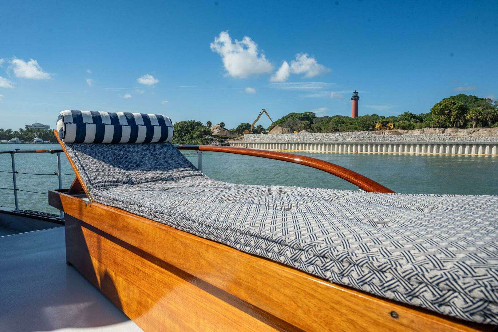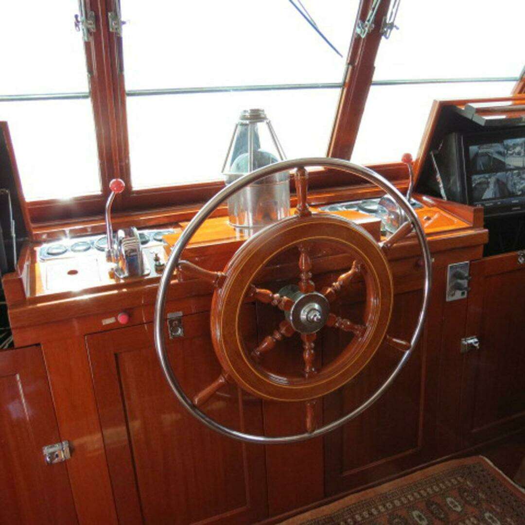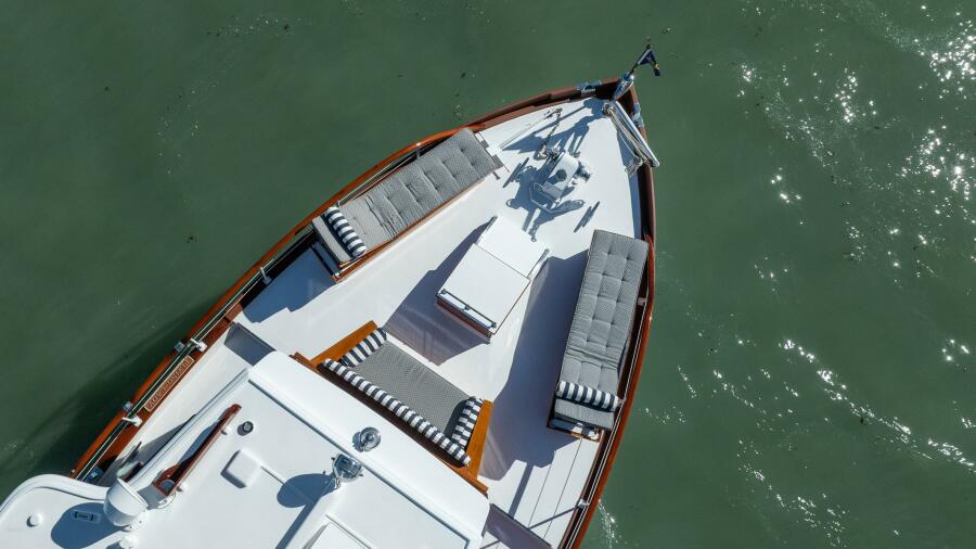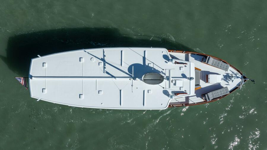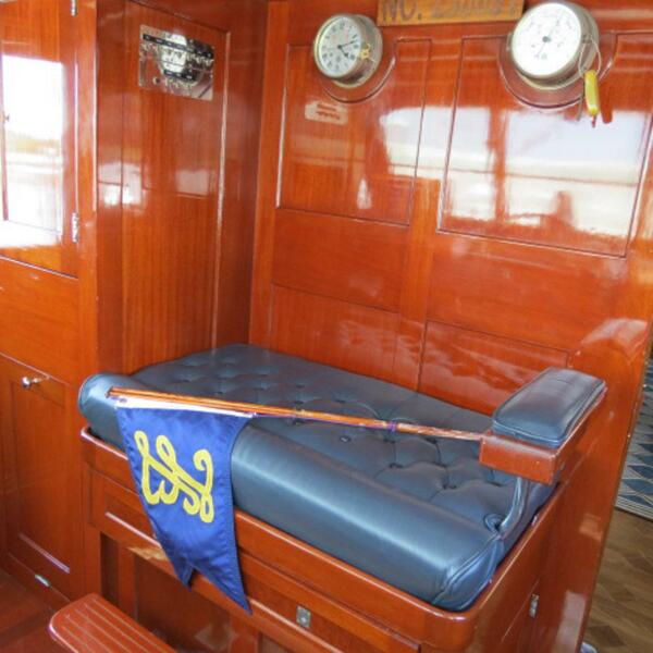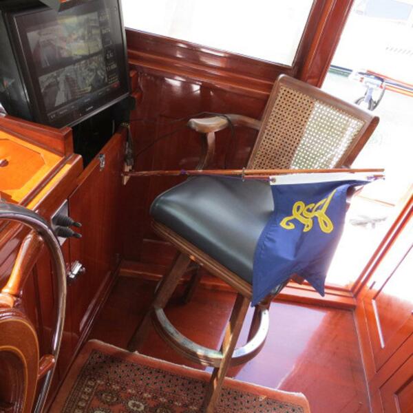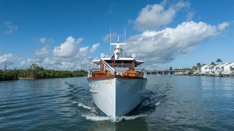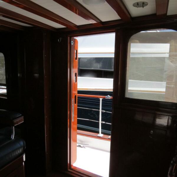 The big advantage to this Trumpy is the C-flex fiberglass hull that was built over the original wood hull. This improvement has made her much stronger and has added vitality to this vintage yacht.
