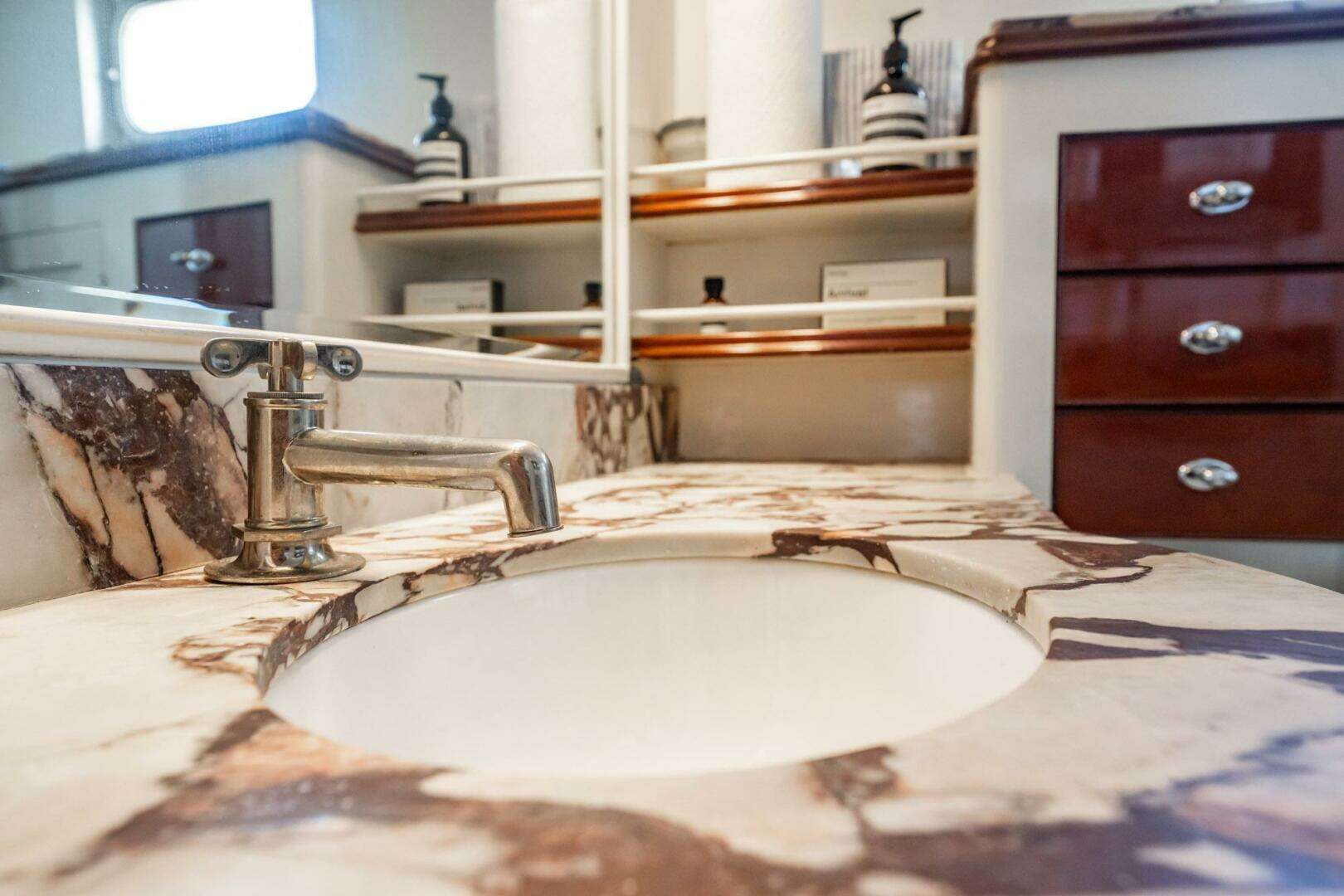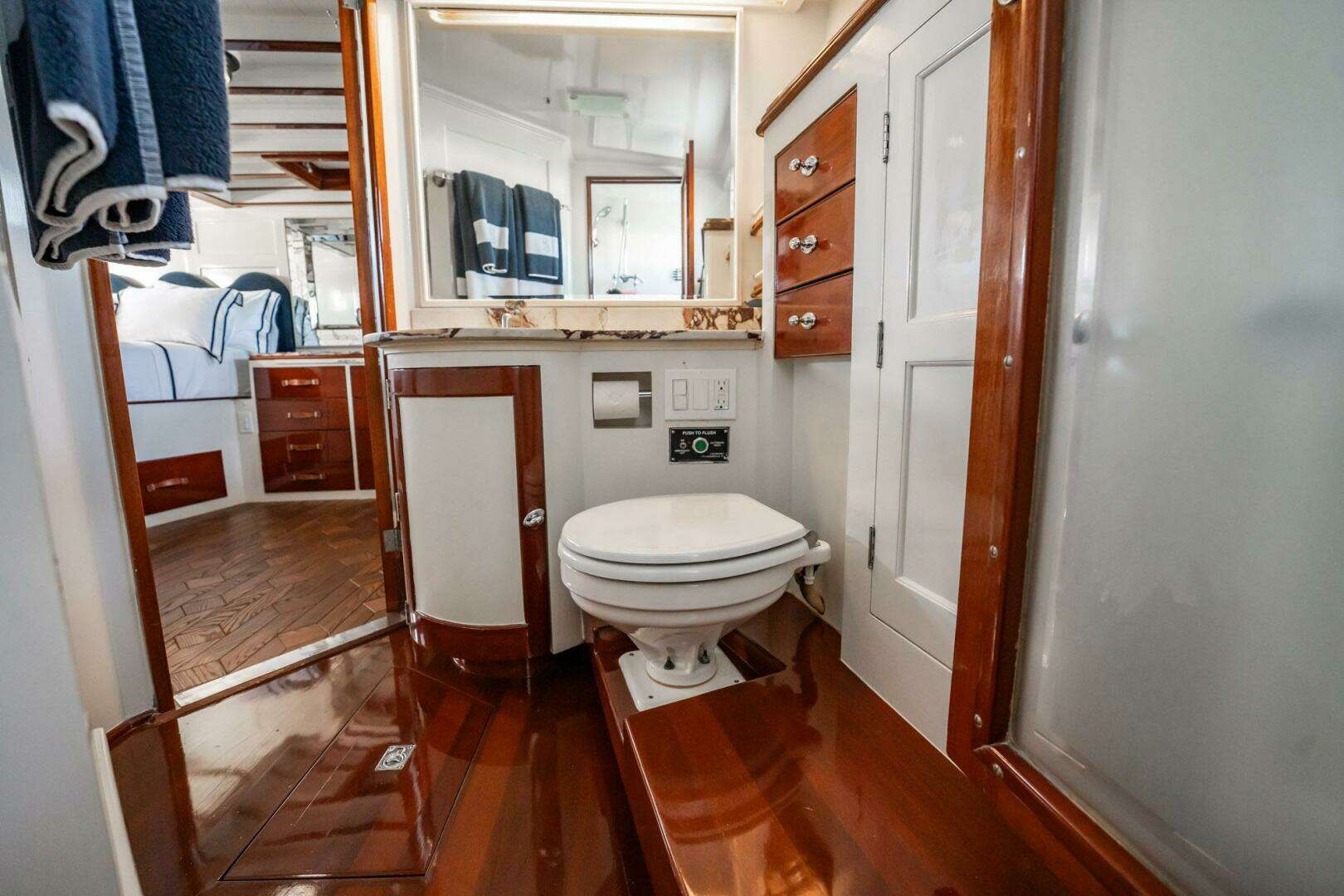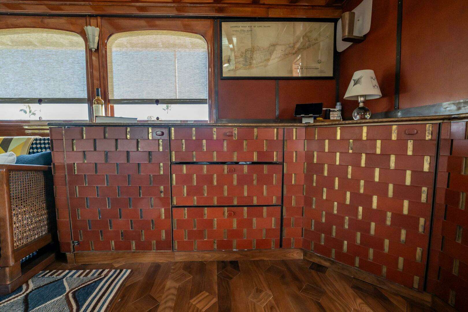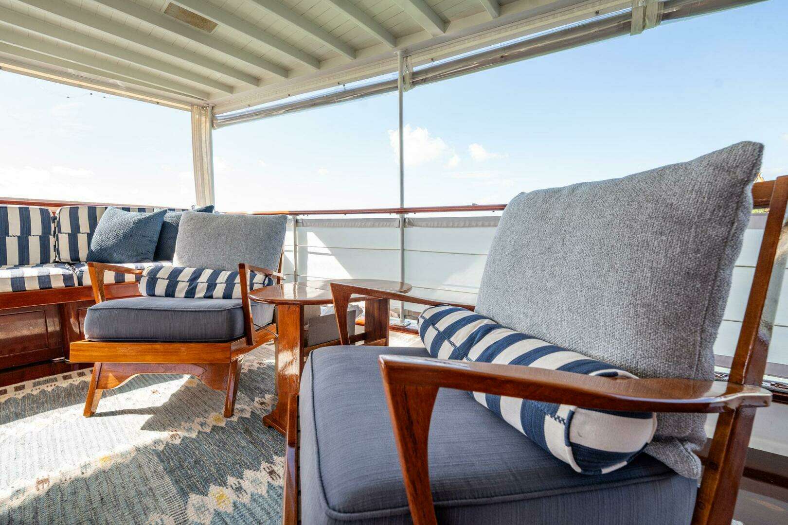 The big advantage to this Trumpy is the C-flex fiberglass hull that was built over the original wood hull. This improvement has made her much stronger and has added vitality to this vintage yacht.