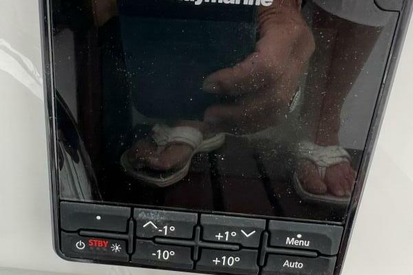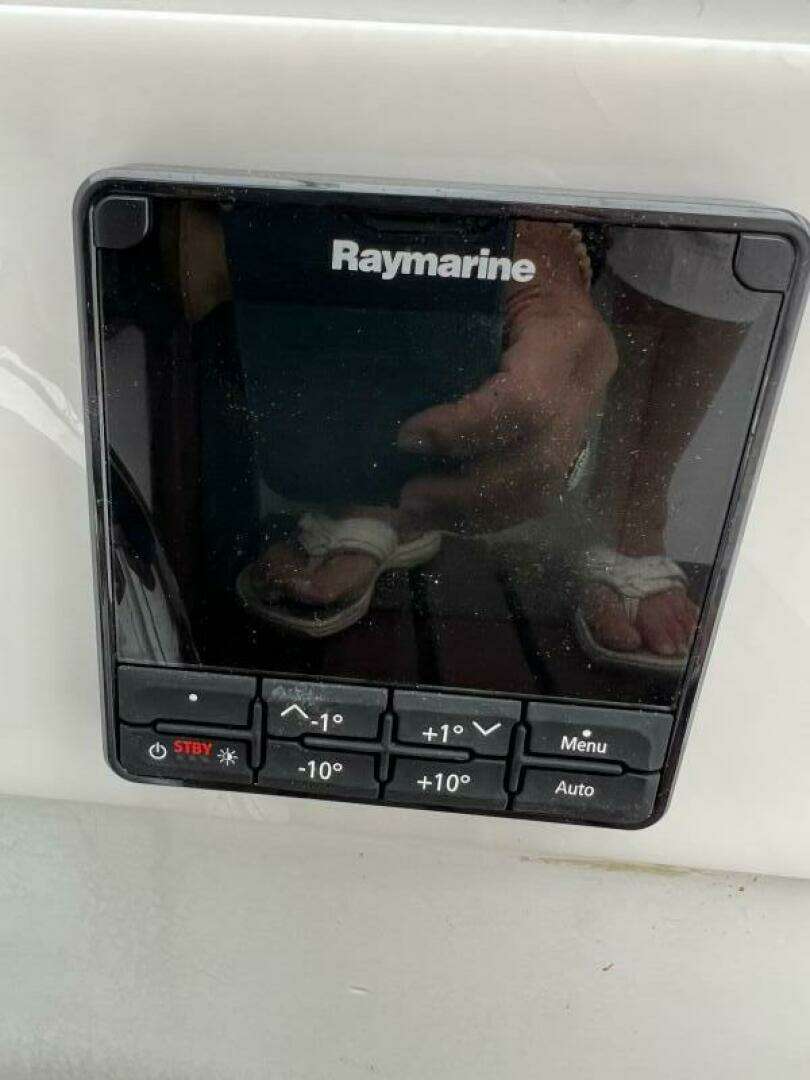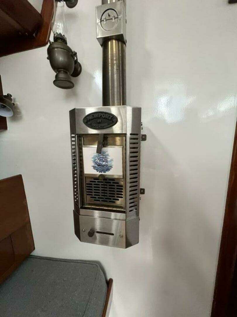 - Large stainless steel refrigerator with cold plate. Also serves as the stand up navigation station to starboard of the companionway