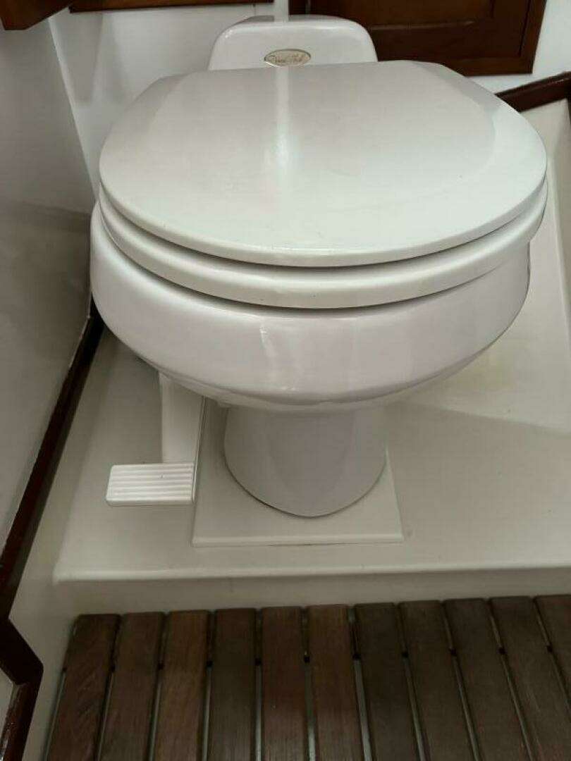 - Head: Located forward to port, the head features a sink, shower, and a Raritan electric fresh water flush toilet in some models.