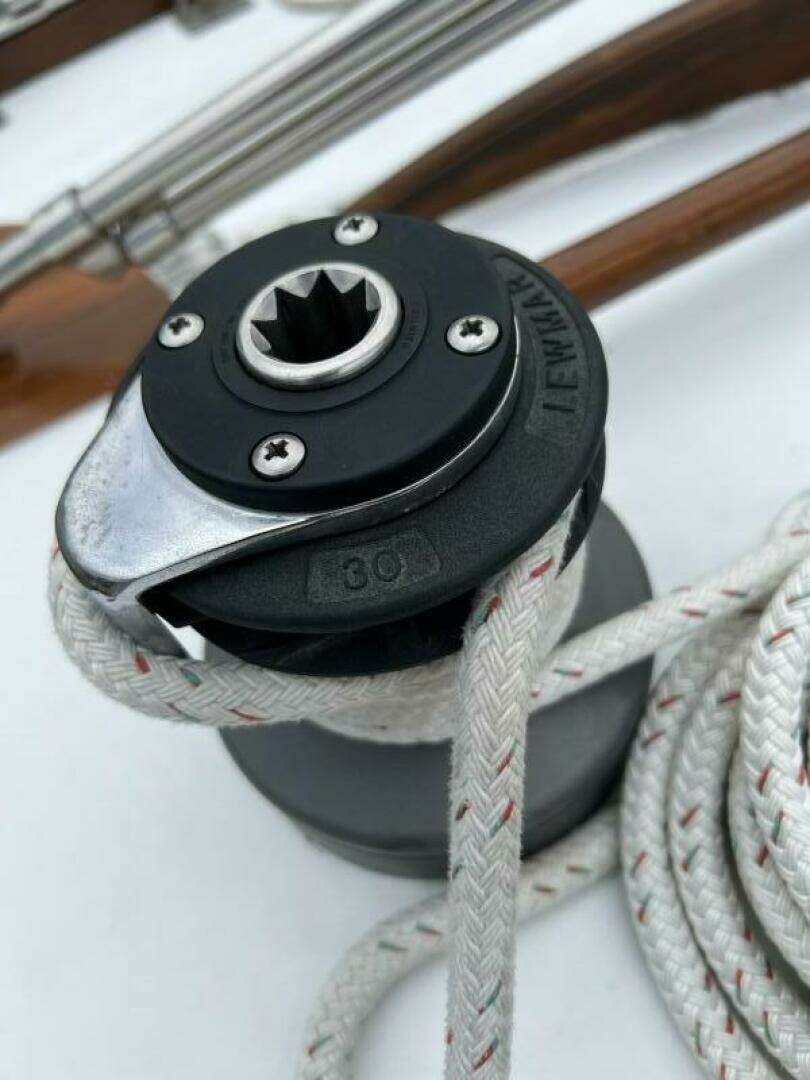 Ma Folie is a lovely Custom B-40. The same family has loved and cared for her since 1985. She has been Awlgripped and the traveler has been moved out of the cockpit on to the cabin top, freeing up space in the cockpit.