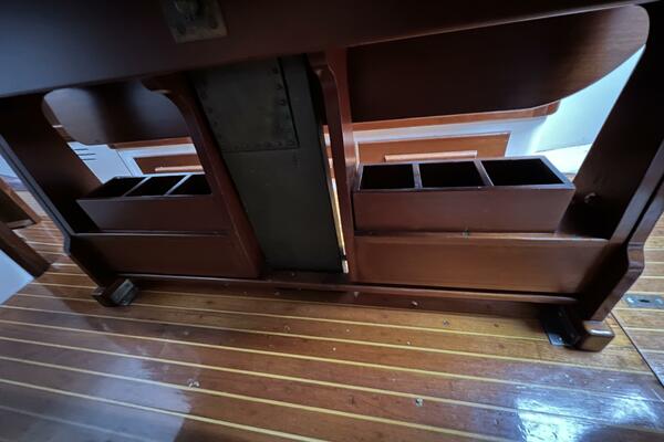 - Materials: Interiors are typically finished with varnished mahogany or cherry, set against a white overhead and a varnished teak and holly cabin sole.