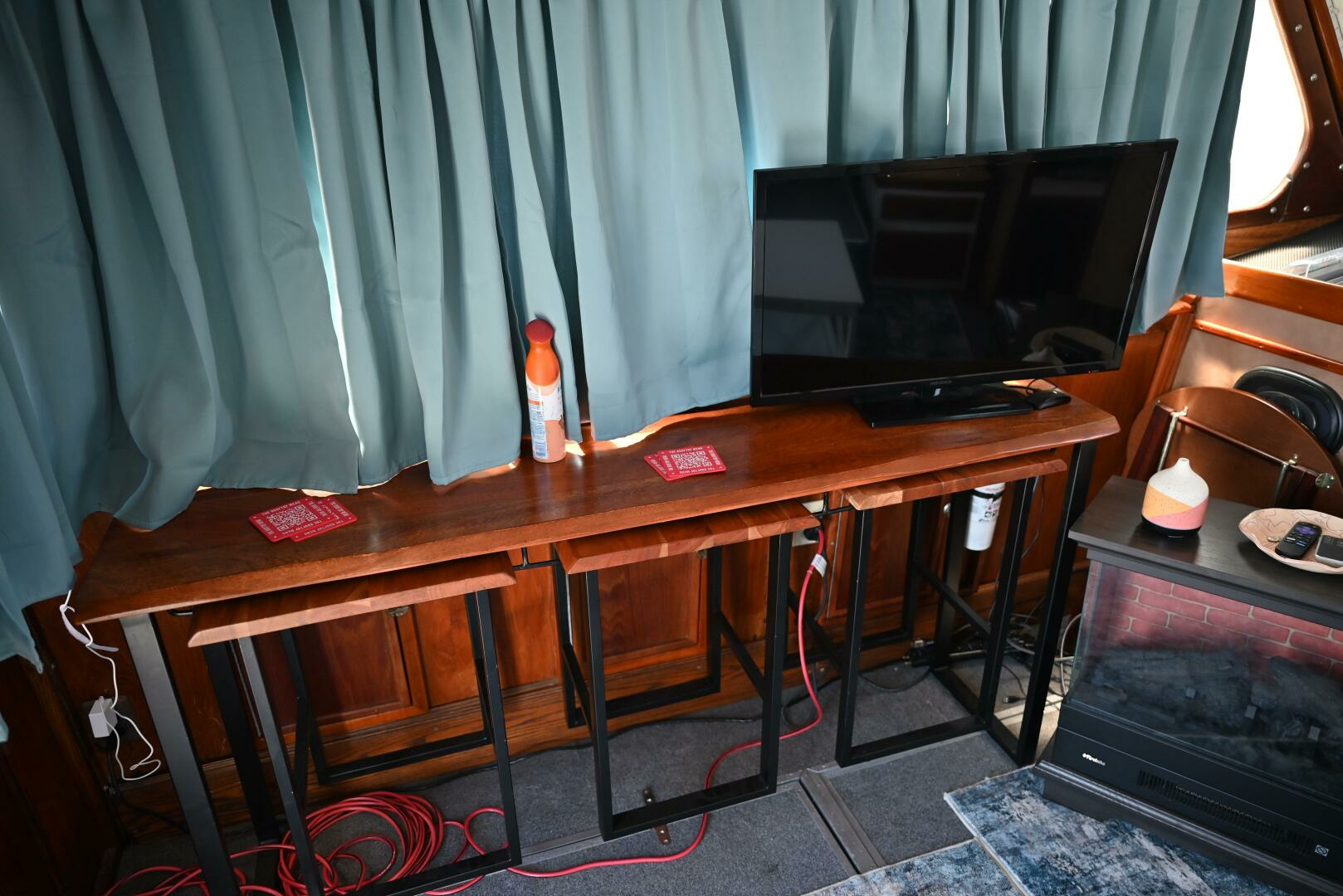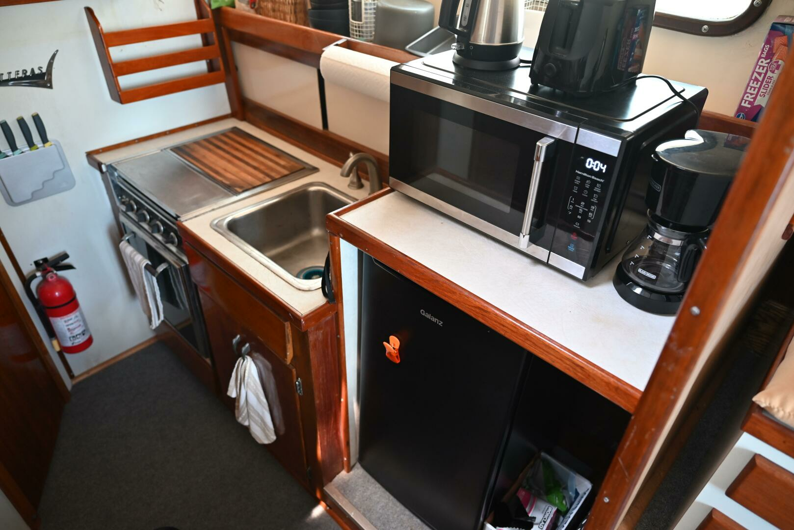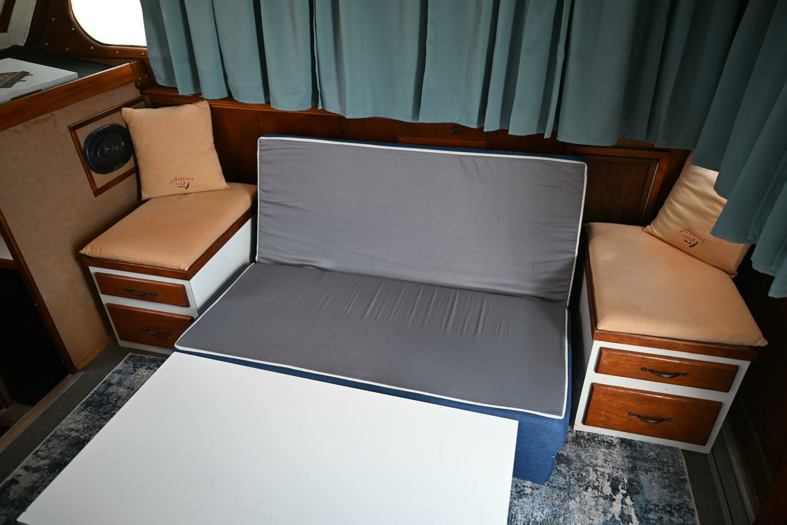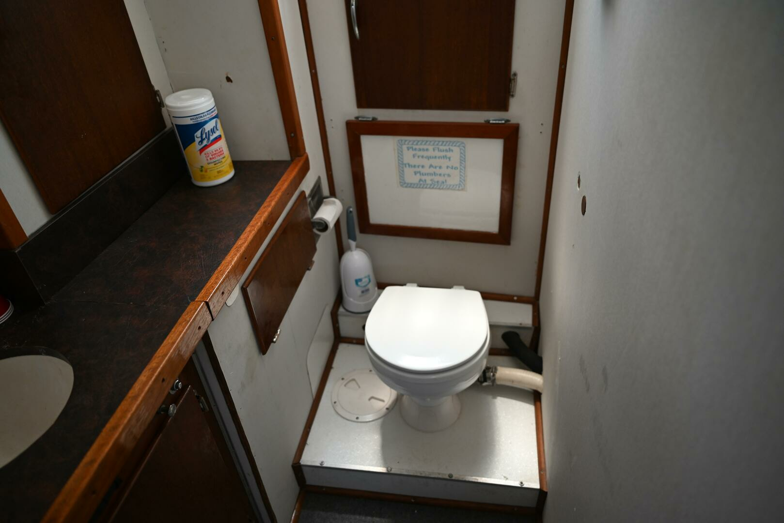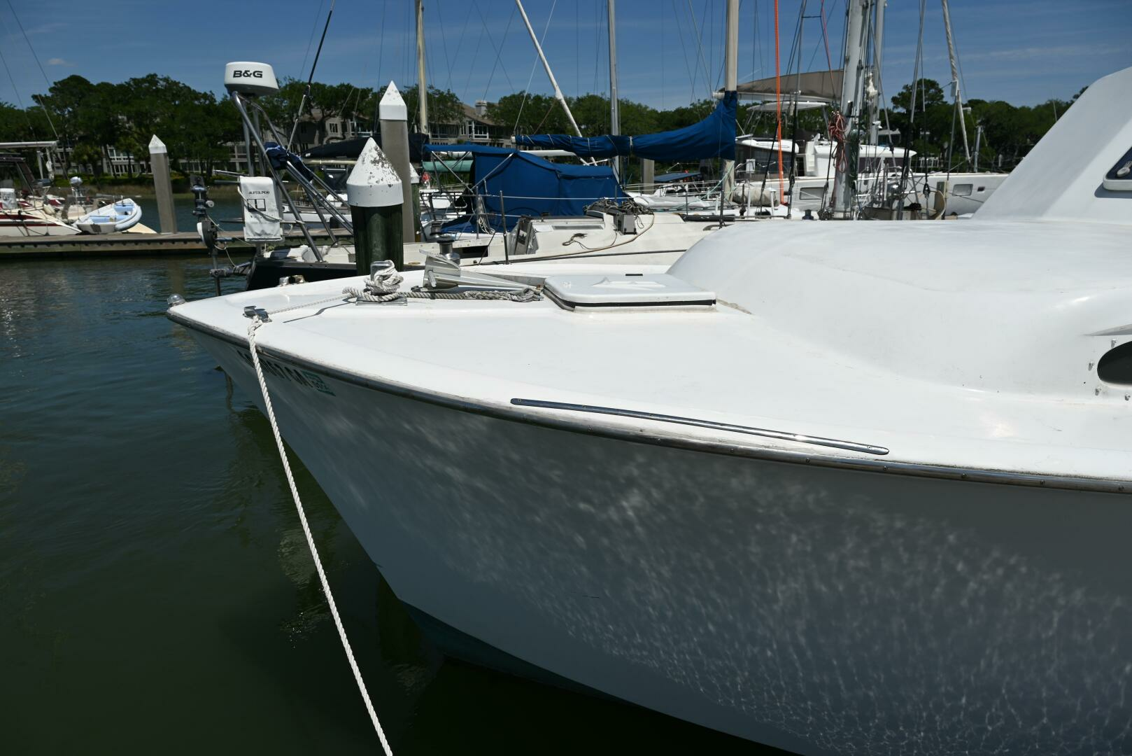 A 1964 Hatteras 34 Sport Cruiser/Fisherman designed as an all around recreational pleasure craft capable of serious fishing. Her interior includes a roomy saloon, an enclosed head compartment, a galley and a V-berth two steps down and forward. She is powered with twin 8 cyl gas engines, both low hour, one a 2013 and the other 2021 and exhaust manifolds replaced in 2021.