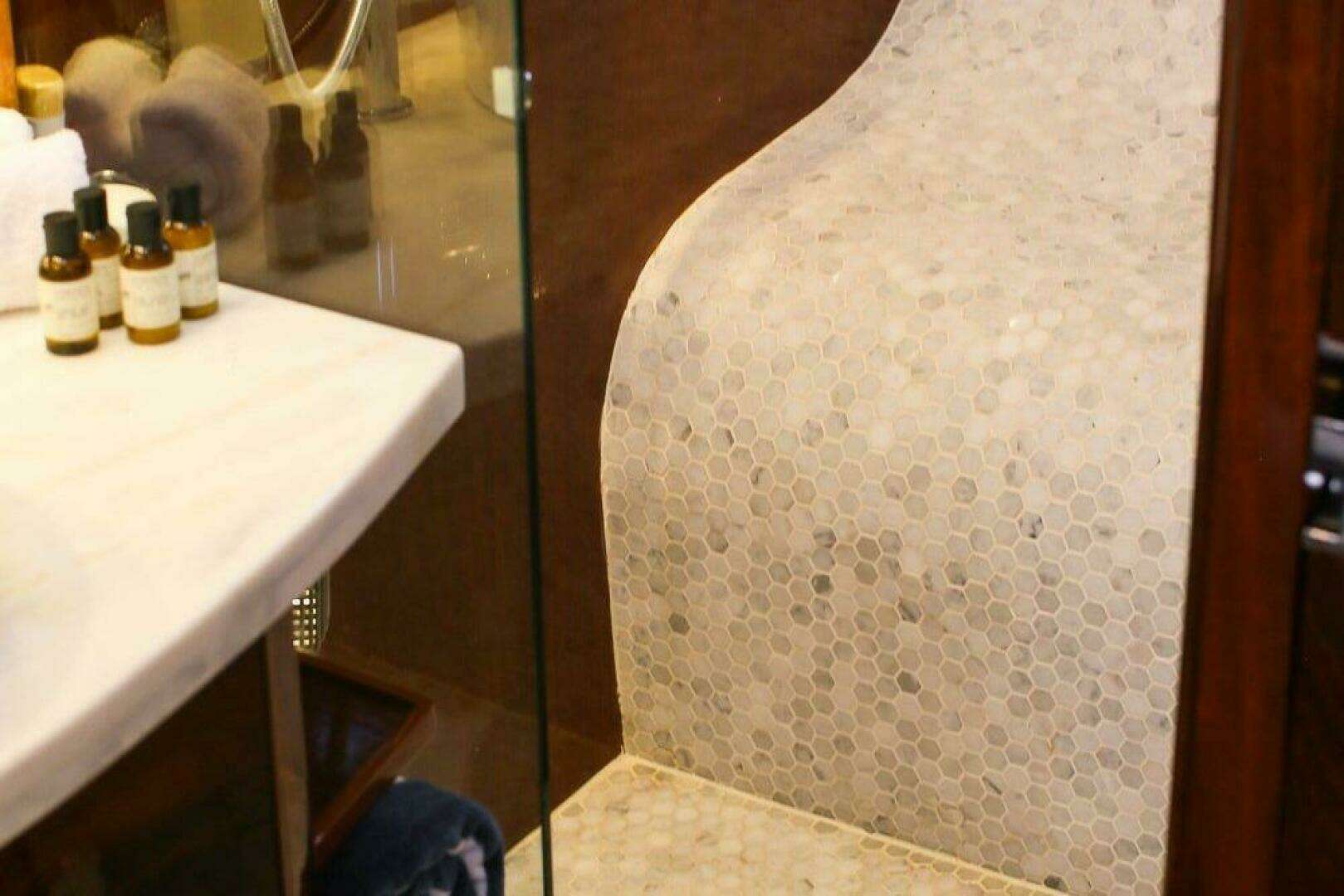 The owner wanted the boat to be extremely comfortable and extremely usable for large groups on day trips as well as weeklong Island adventures, with space to accommodate a crew or the simplicity that allowed for owner operation. To this end, the original layout was changed to incorporate more spacious and private cabins, each with full bathrooms and showers and dedicated, uncompromised storage spaces.