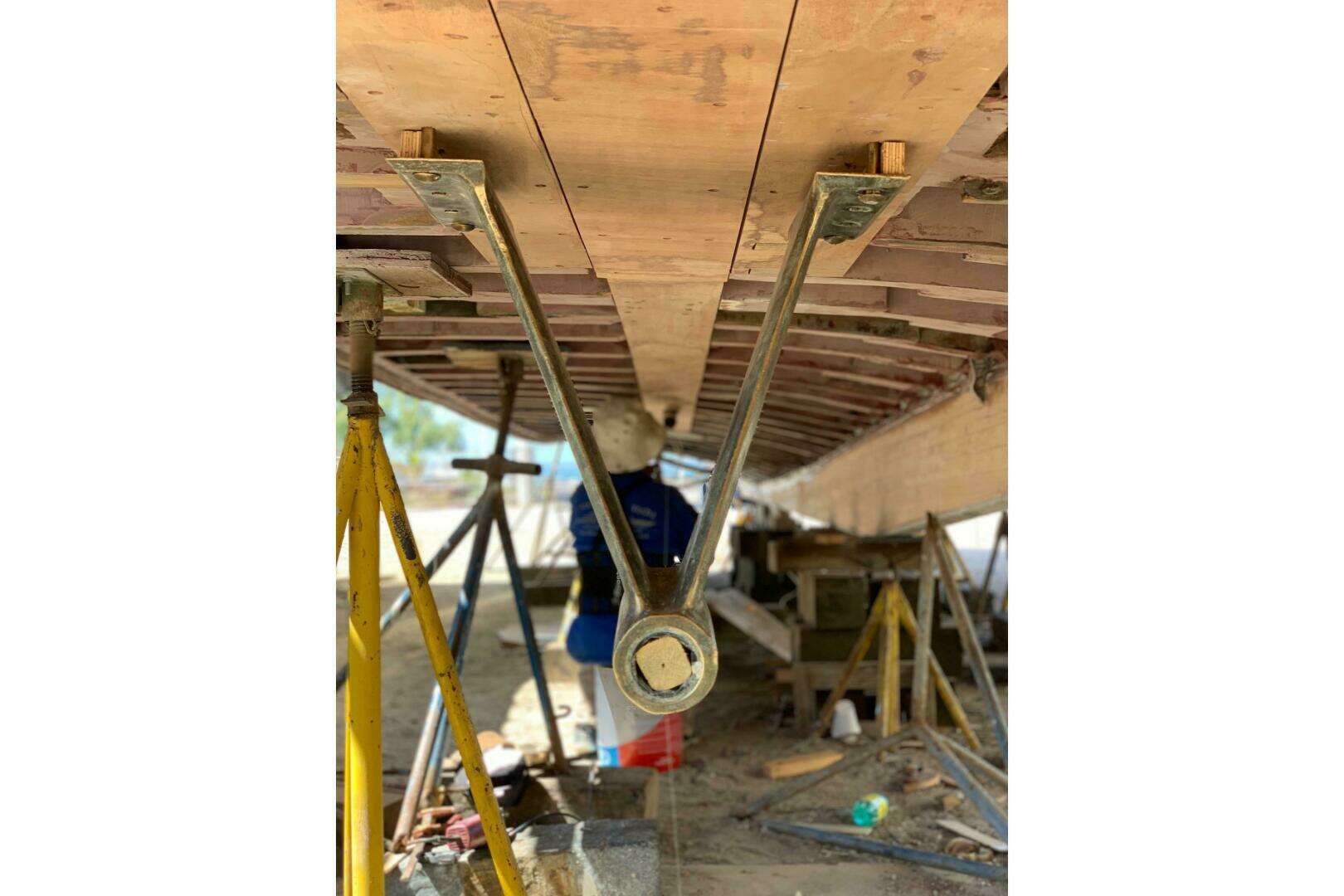 Wherever possible, additional bracing and sistering was added to help tie the original stringers and ribs to the cold-molded hull and increase the strength.