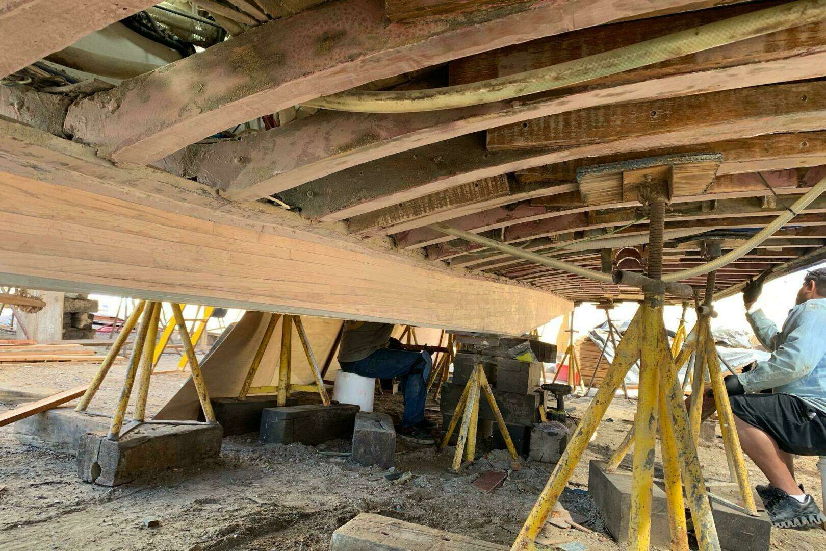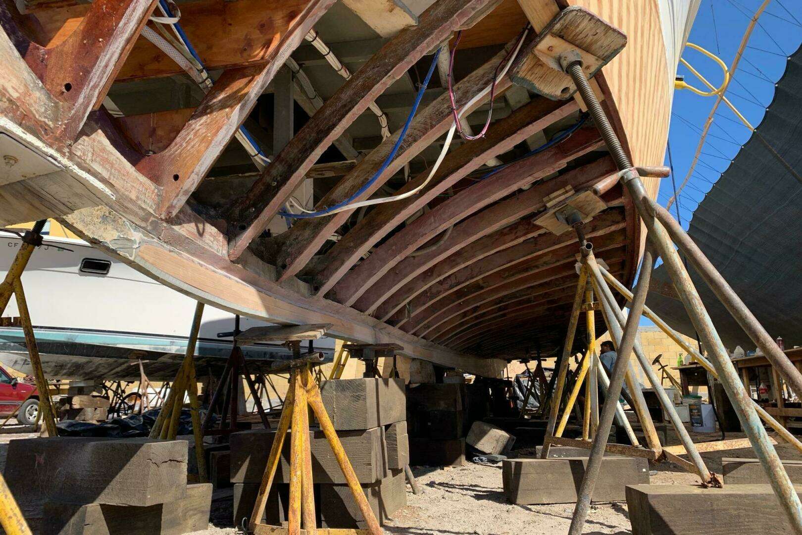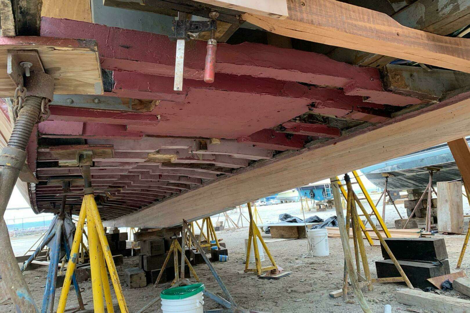 Consulting with his shipwright, the owner developed a comprehensive plan to rebuild the entire hull and keel. Materials sourced include: