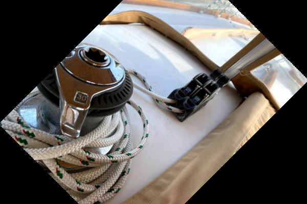 - SELDEN Traveler on aft combing w/LEWMAR Blocks