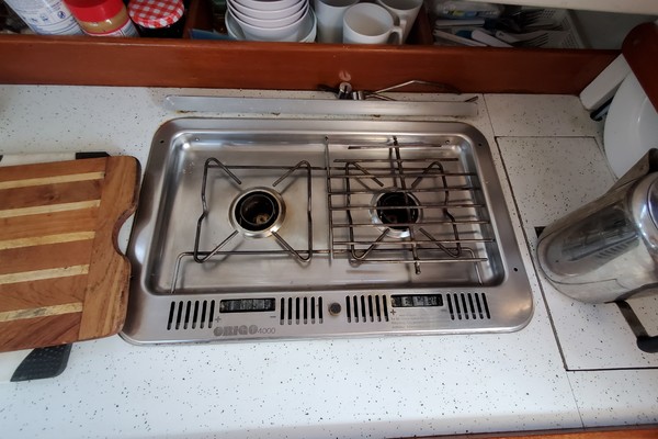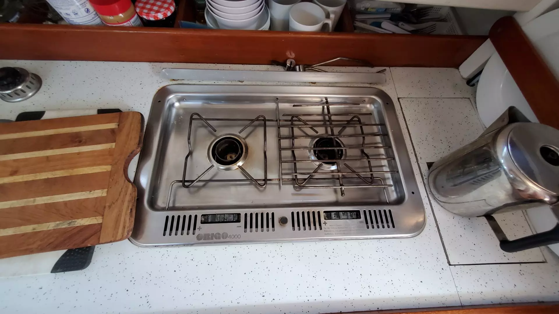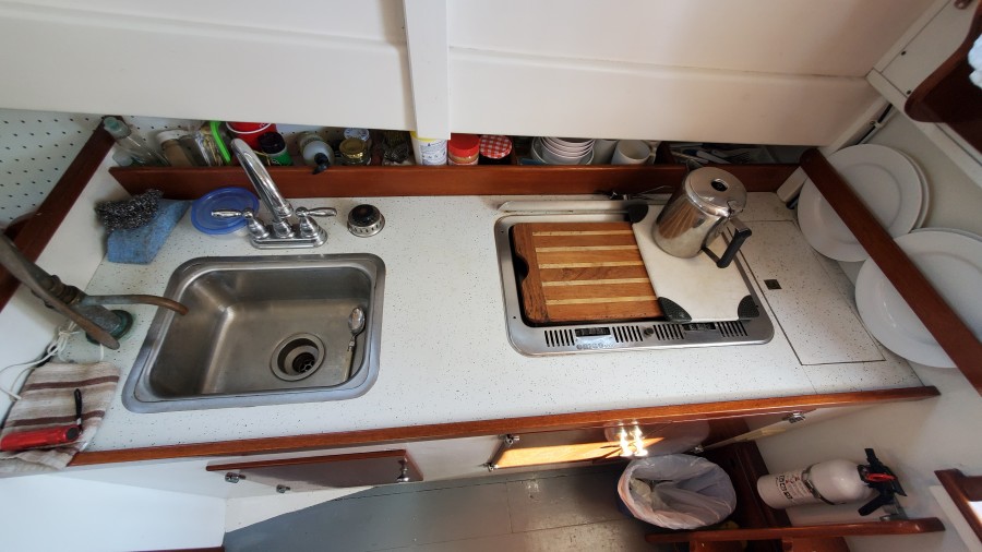 - Stainless sink, with cold water hand-pump, as well as pressurized hot & cold water.
