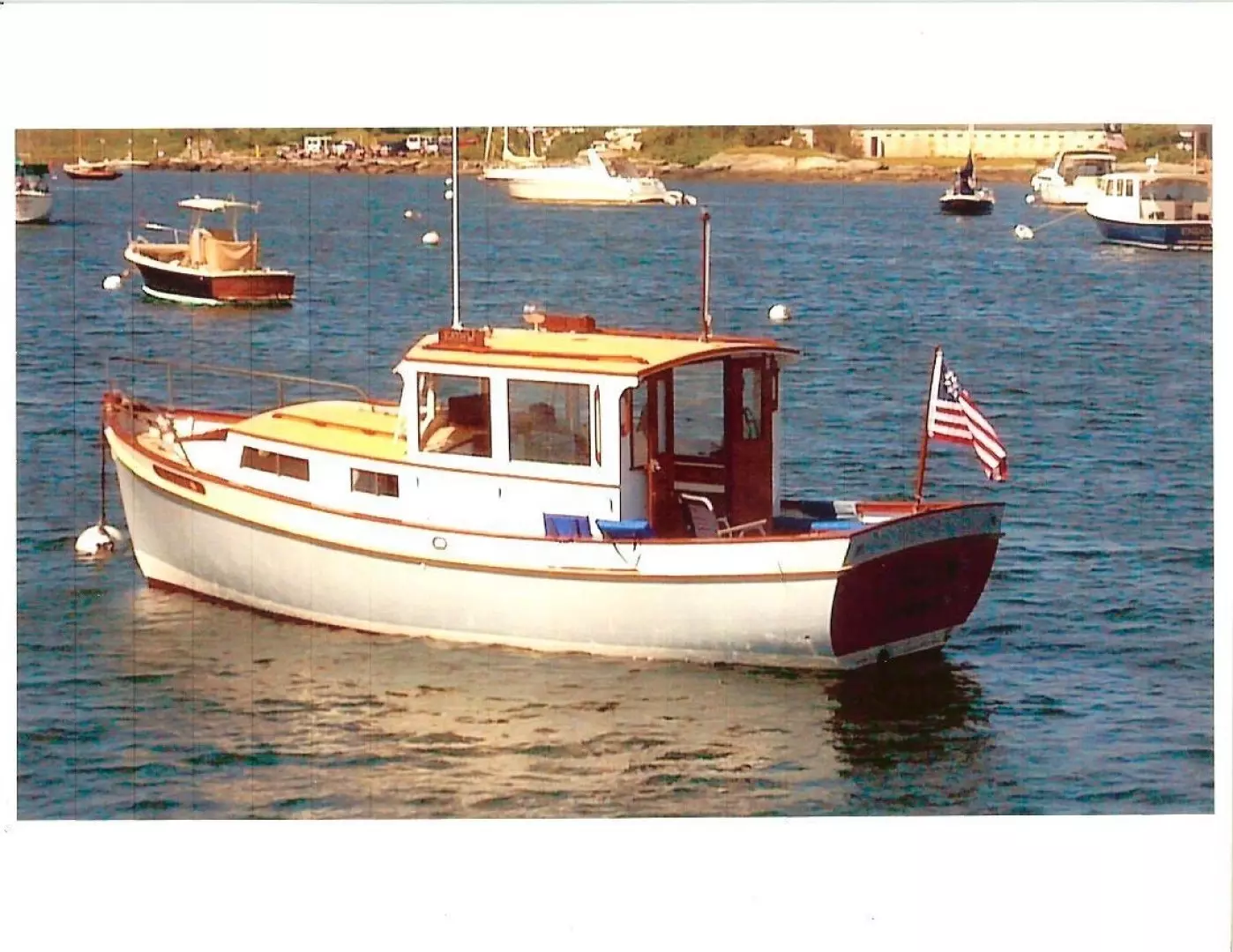 Subsequently sold in the 1990's to new owners in Rockland Harbor and renamed "Monomoy", she was repowered with a 3 cylinder Volvo diesel, which lowered her performance slightly but allowed her to put-put along with ease.