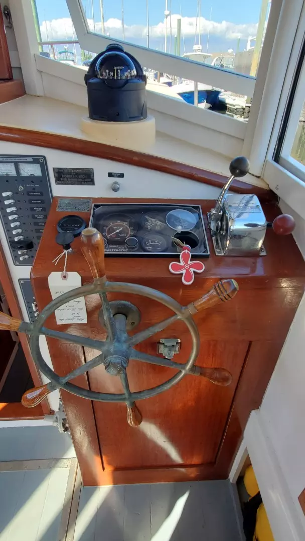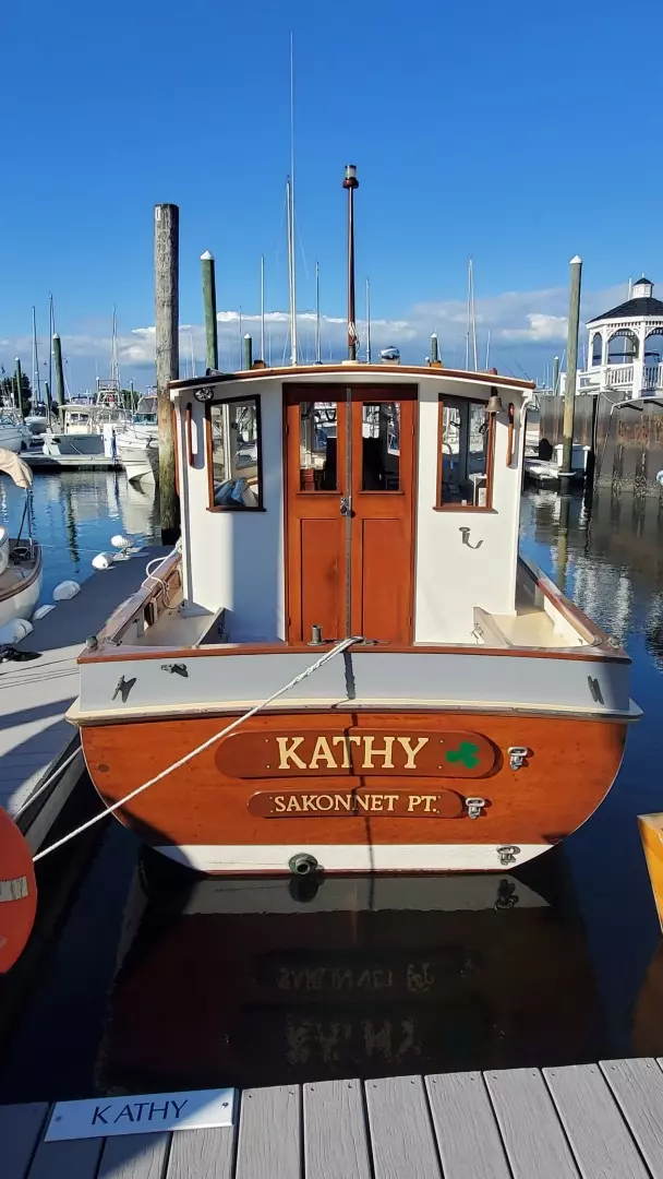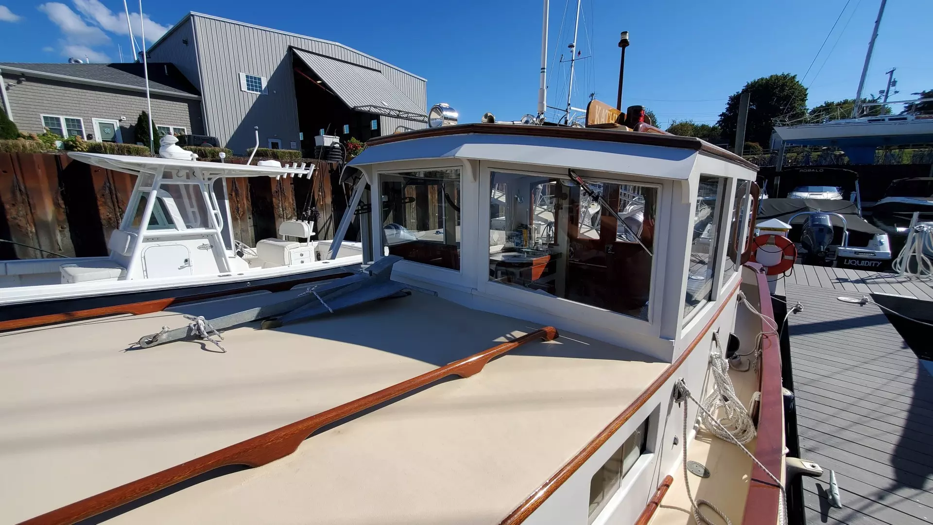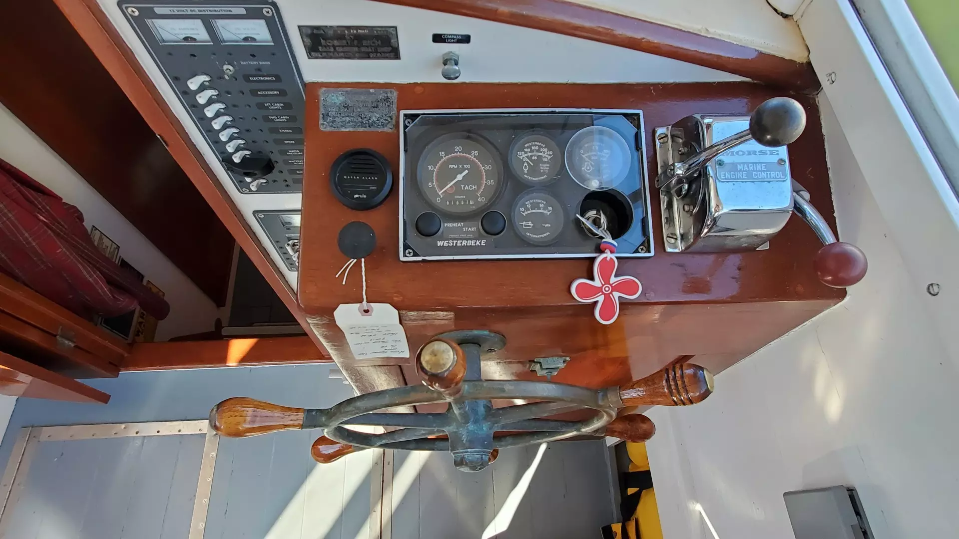 "KATHY" is a simple boat to operate, with no complex systems to maintain and the Westerbeke, which allows her to ply easily at 7 knots while burning less than a gallon per hour, ensure she can travel distances exploring the New England coast as she was originally intended to do.