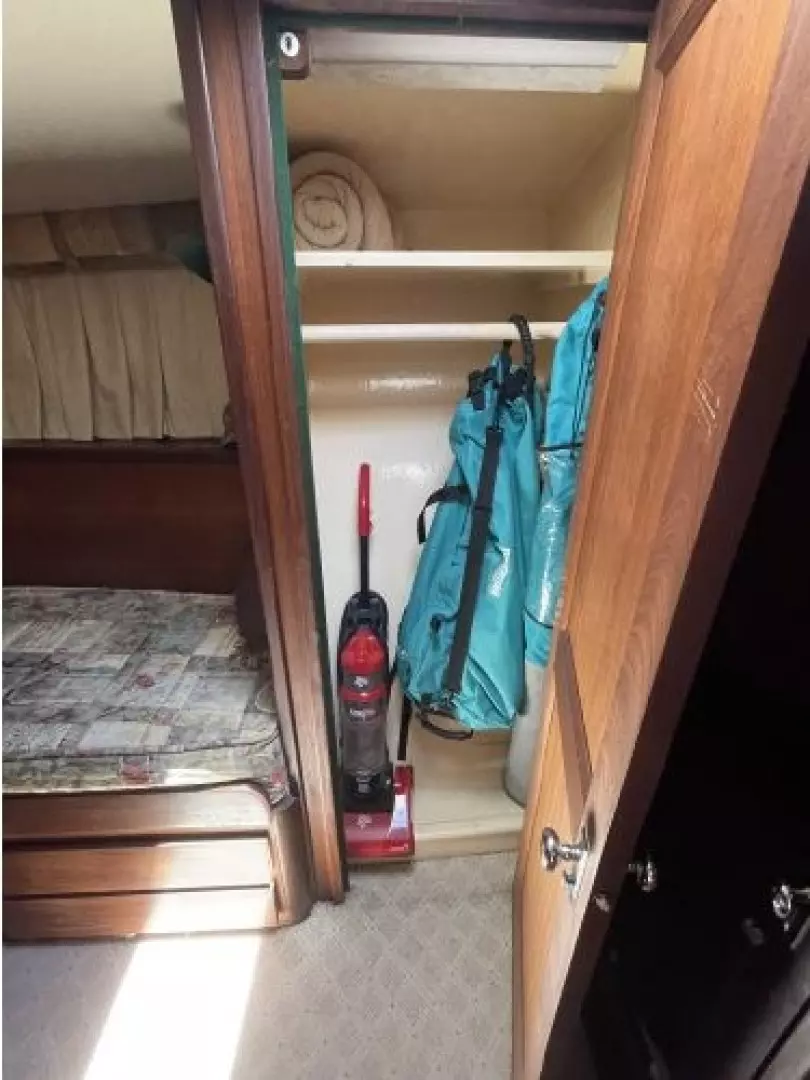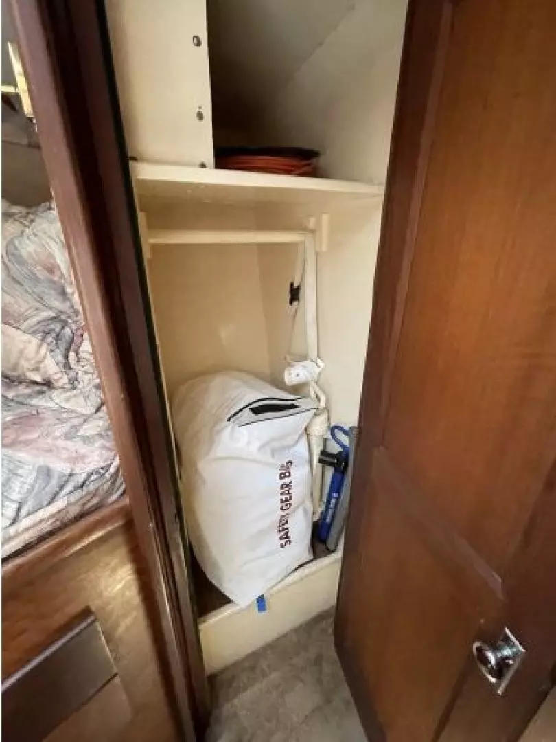 The 2nd stateroom has 2 single berths with a bureau in between and large hanging locker forward as well as private access to the head. Her galley is located down and across from the Master Stateroom.