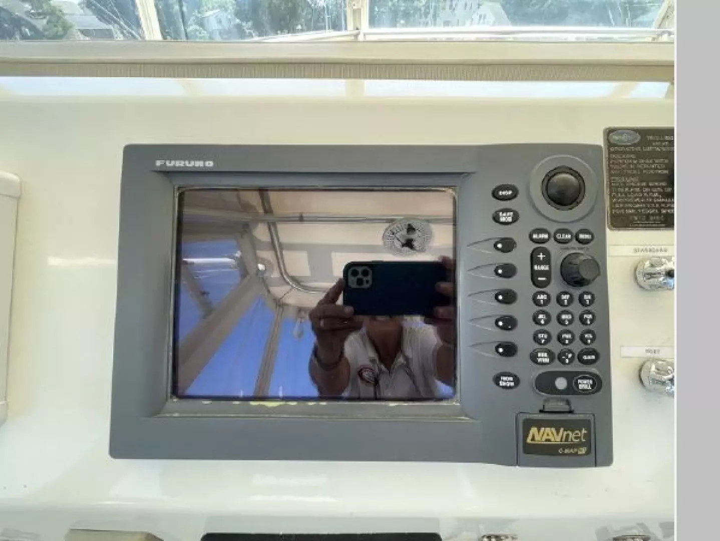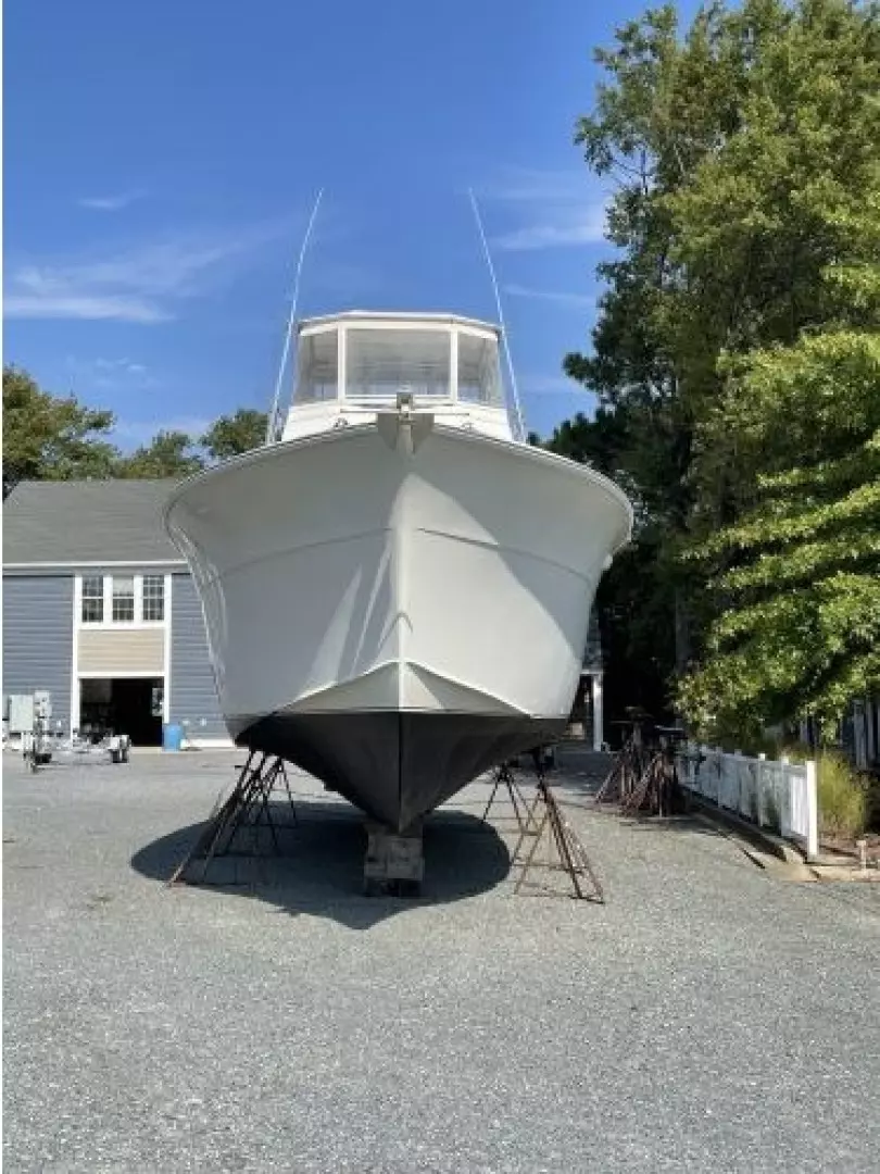 The boat is very fast (33 knots) for its size and weight and really handles big seas well. I installed trolling valves which work very well for slow trolling rockfish and when landing big offshore fish. This boat has proved itself whether taking 18 people out to watch fireworks or 10 people offshore, it's never left me stranded. The two VHF radios, radar, life raft, sea anchor (18-foot parachute drone) provide peace of mind when a storm is bearing down. Everything is in working order. Engines and transmissions run strong and have no problems. I really love this boat but am now physically unable to use it as I once did. Videos and photos of the boat in action can be seen by contacting the broker. This boat is majestic and magnificent and will provide many more years of service. It is truly one of the best purchases I've ever made. I guarantee you will not be disappointed if you see it in person.
