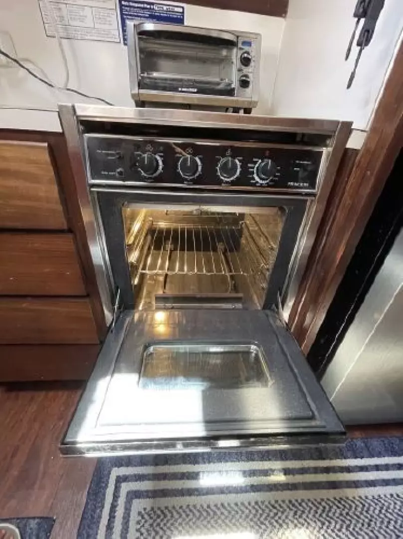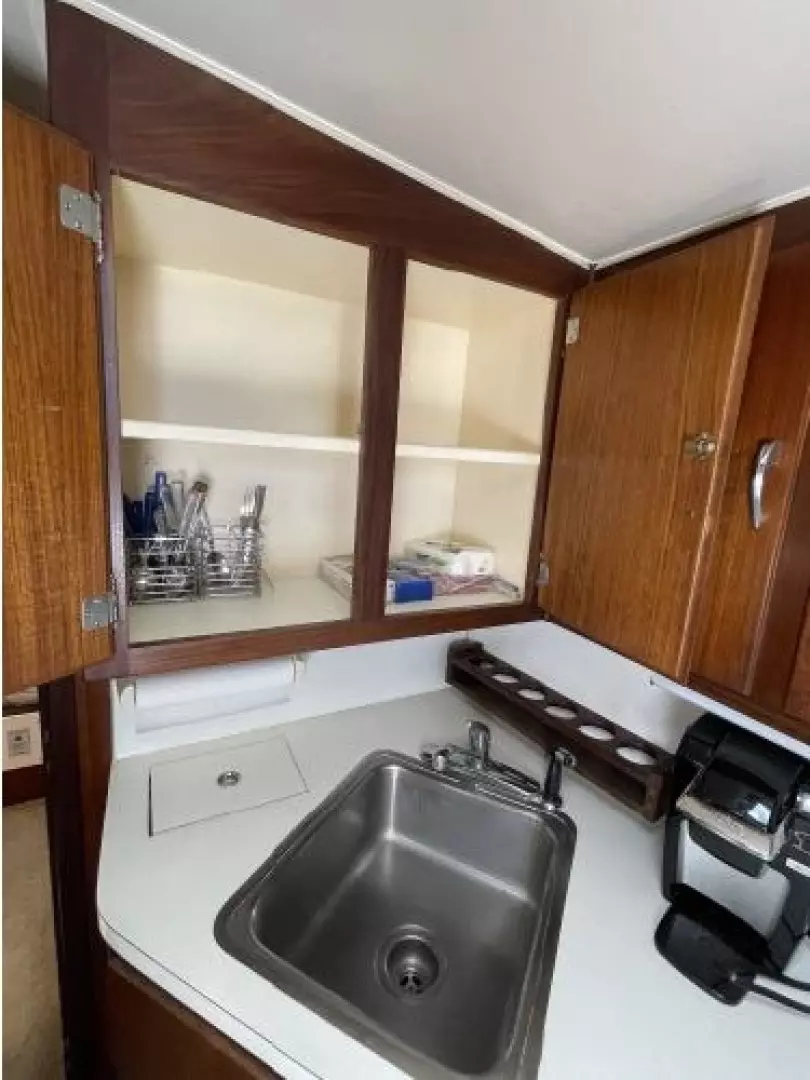 She has a large and well equipped full galley that will keep you going for those extended fishing trips.