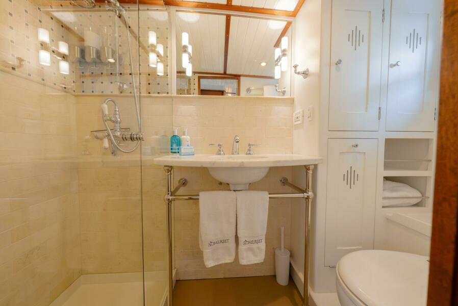 • Generous storage for toiletries, towels, etc.