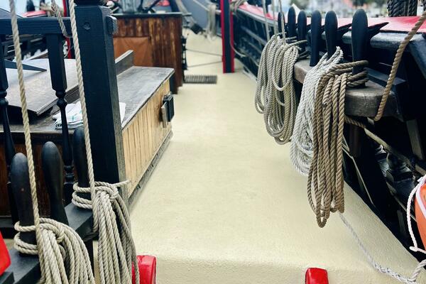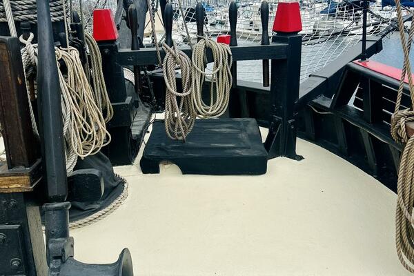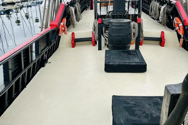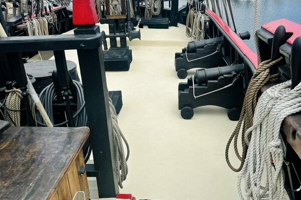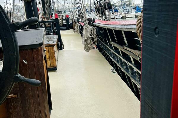 Welcome aboard "The Devil's Gauntlet", a truly one of a kind, historic & iconic motorsailer that was built in Pillar Point, California. Her build was supported with extensive help and shared knowledge from the Philip & Son Shipyard (Dartmouth, England). The Devil's Gauntlet is an exact, full size replica of the Brigantine "Sultana" (1768), a Royal British Navy ship that was built to protect the Massachusetts coast from piracy, prevent smuggling, and collect customs duties.
