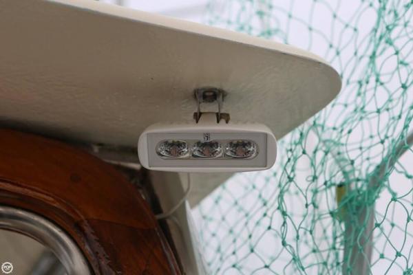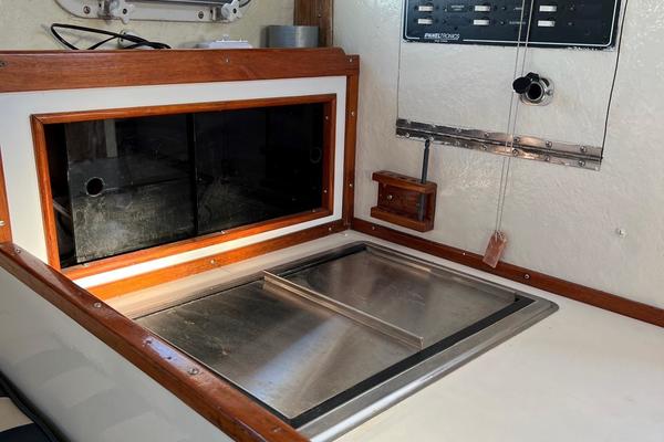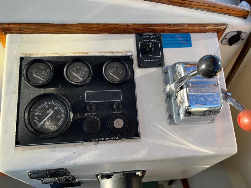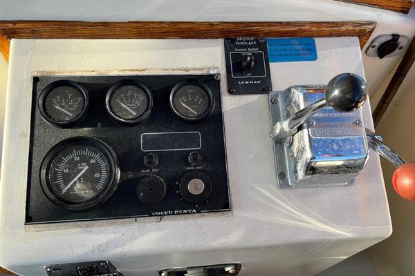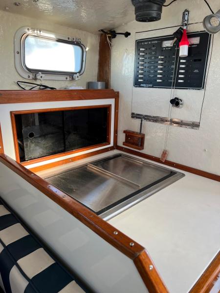 Beneath the 3' by 4' engine box about centered in the boat is a solid, dependable 200 hp Volvo turbo-diesel and simple, direct drive train... the same kind of bullet proof, time-tested configuration relied upon by just about all commercial fishermen in this size and class of vessel.