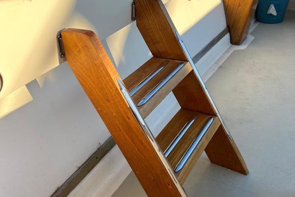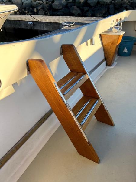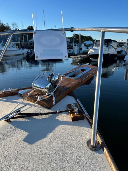 - Refinished teak bowsprit