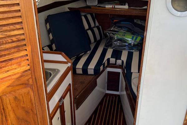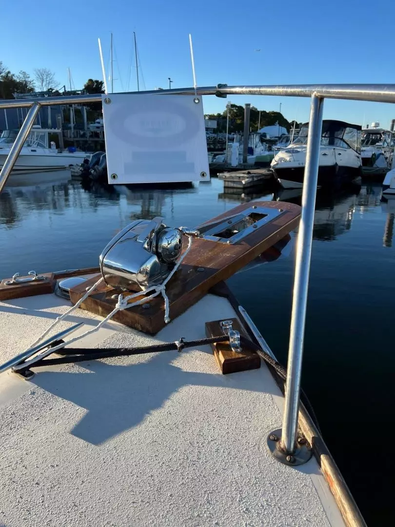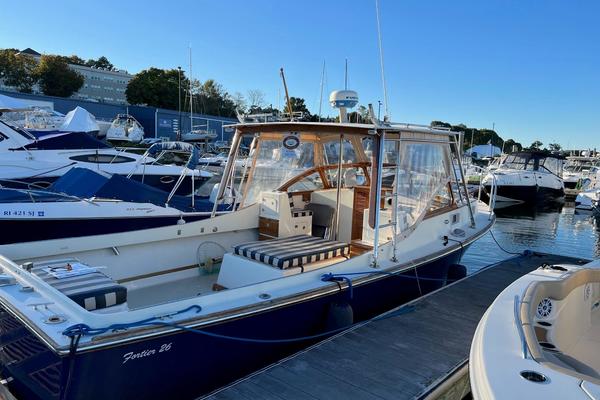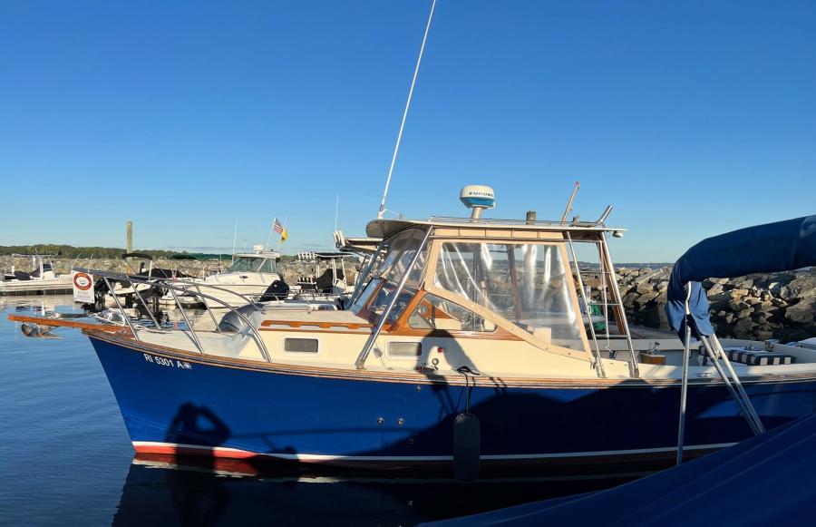 The Fortier 26 is an Eldredge-McInnis design that combines Down East and bass boat characteristics in what the builder calls an honest sea boat for fishing and cruising. Otter is a fine example of all that has made this Buzzards Bay built boat a favorite of both fisherman and pleasure boaters alike. This 1978 Fortier 26 has benefitted from great care by her current and former owners. She has a recent beautiful blue Awlgrip paint, Lewmar windlass and stainless steel plow anchor, and Simrad GPS touch.
