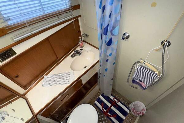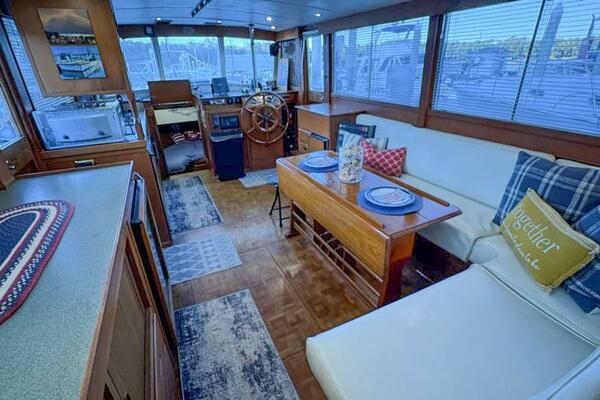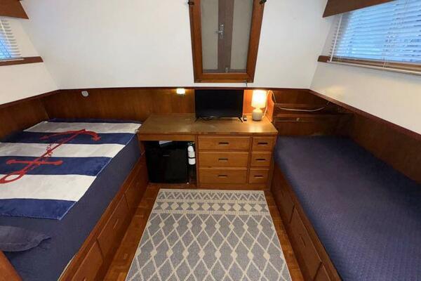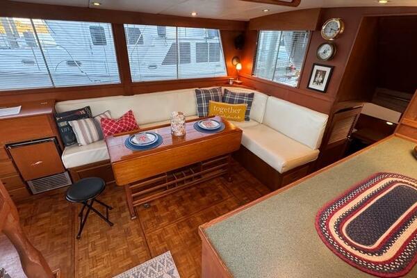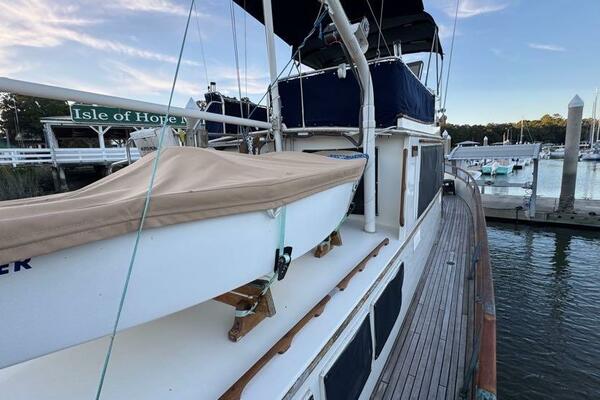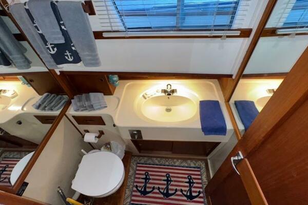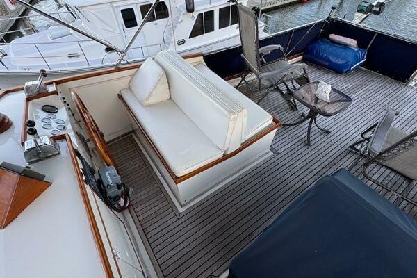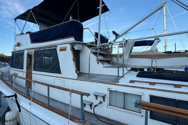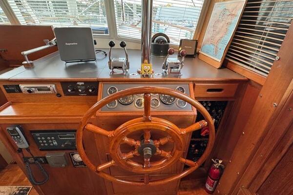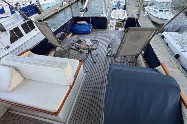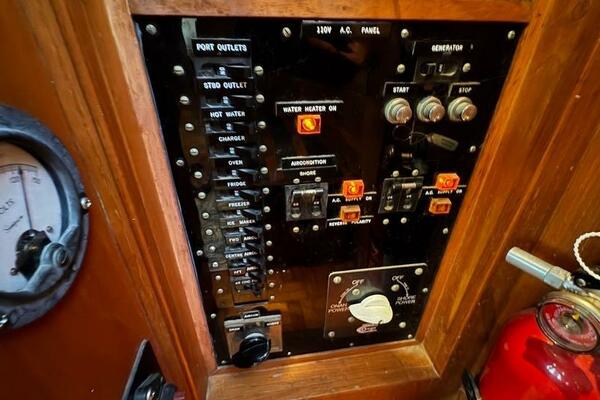 | Notable Upgrades: 2010 Onan 6kW generator (2,516 hrs) 2016 new teak decks ($35K) Aluminum fuel tanks and new poly water tanks 400AH lithium battery bank with 3000W Xantrex inverter Bottom paint, compound, and wax March 2024 Starboard transmission rebuilt (2019) Custom blinds, headliner, and LED lighting upgrades |