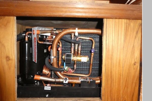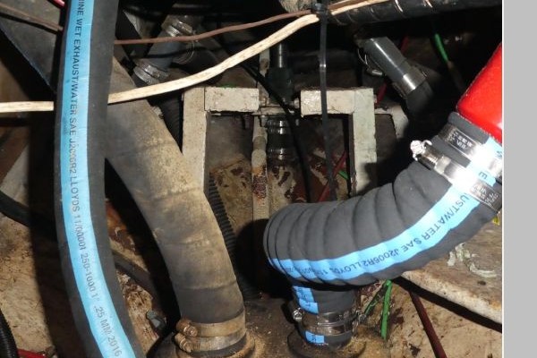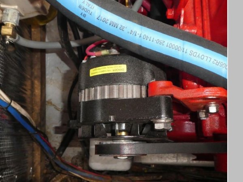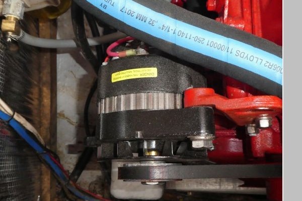 Installation of new alternator and related wiring, drive belt and salt water impeller.