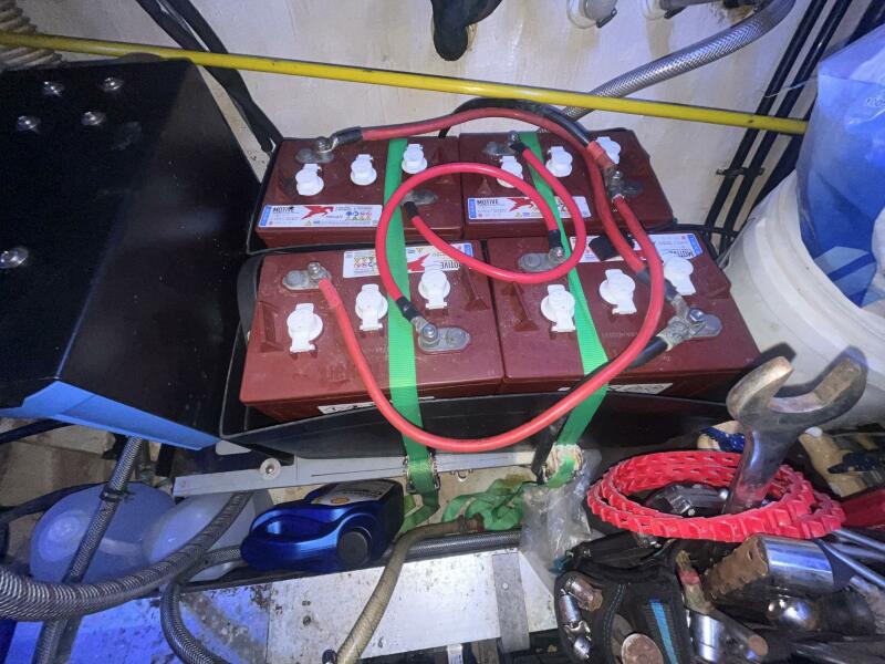 - Lofrans 12v windlass (rebuilt 2025) with foot controls on the bow, and controls at both helm stations