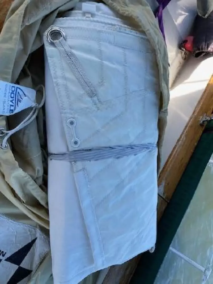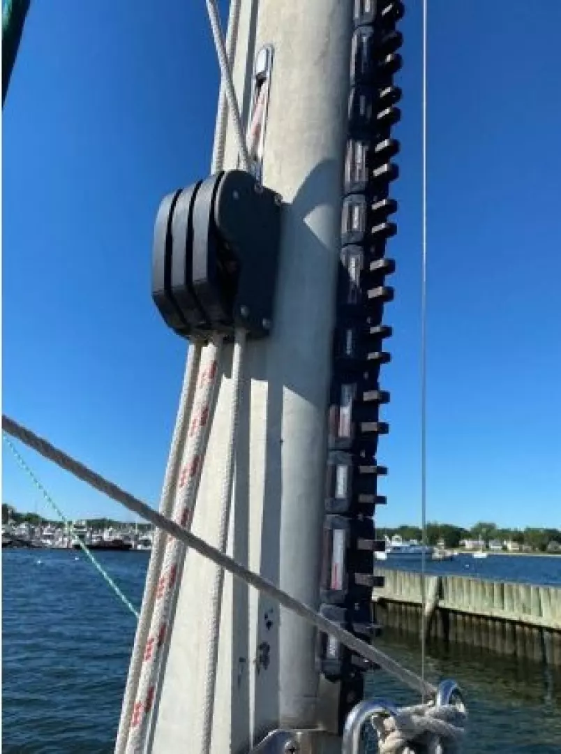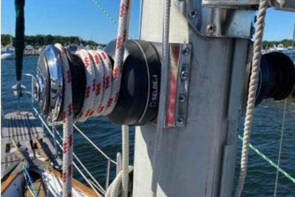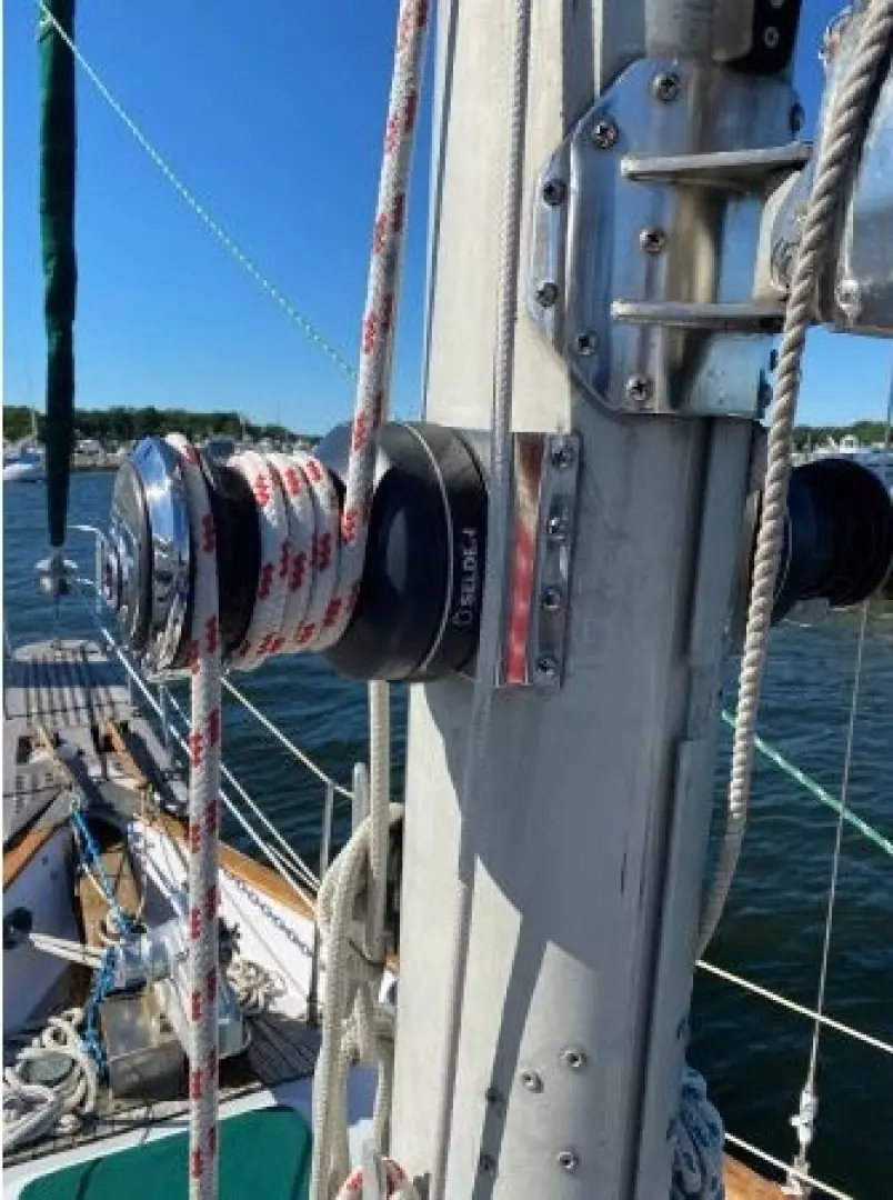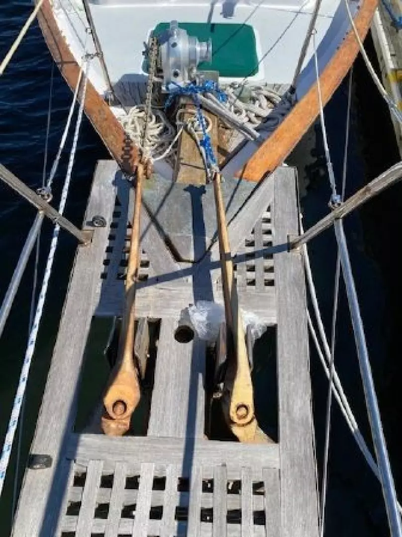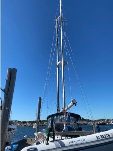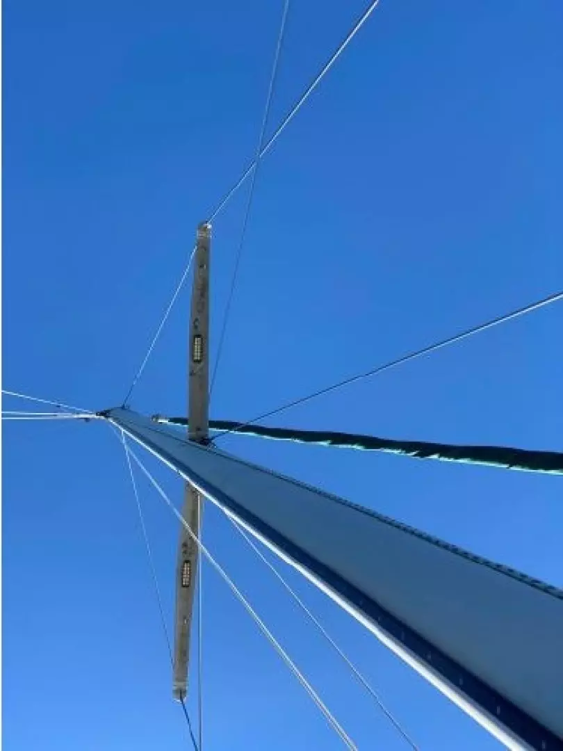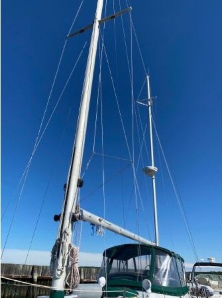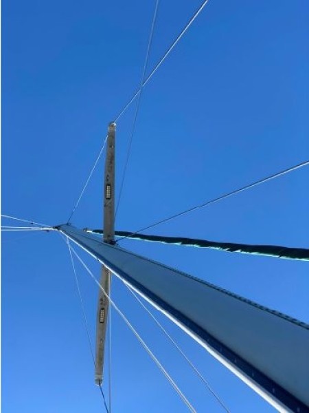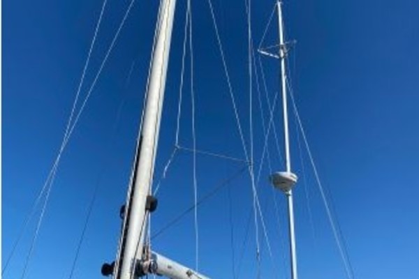 Sabine has a ketch rig with deck-stepped aluminum masts