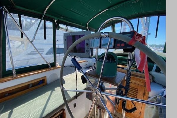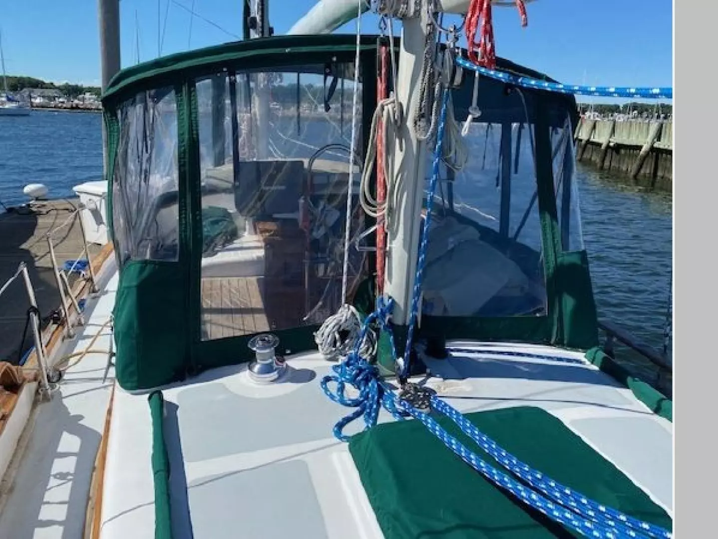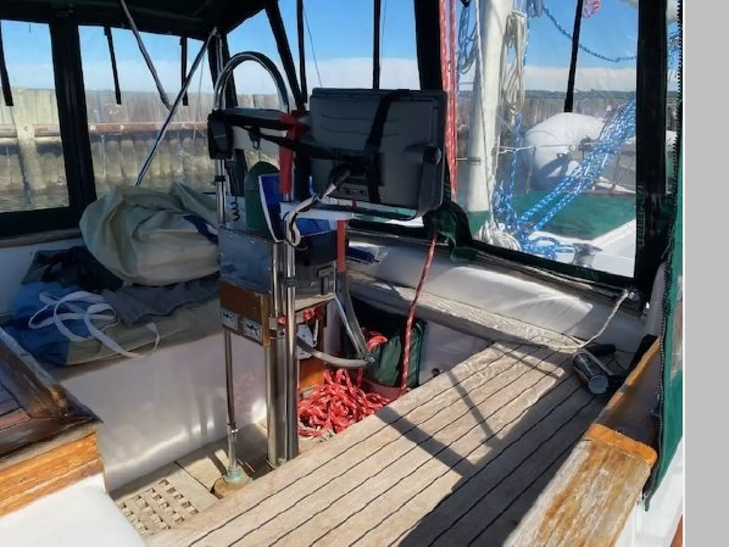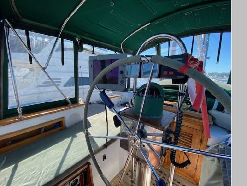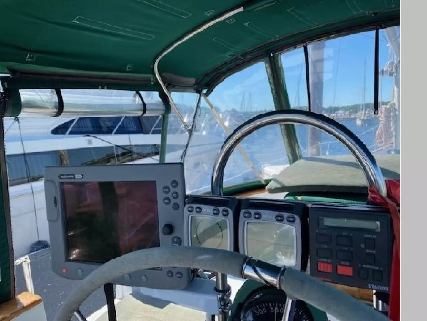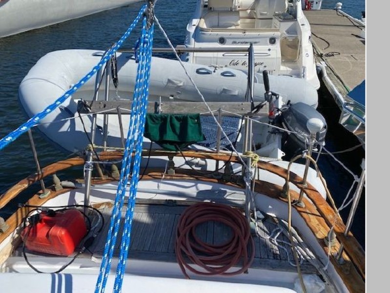 She has a full canvas enclosure making the cockpit protected from weather and creating a perfect spot for leisure and socializing at the dock or anchor. She comes with a 2 year old dinghy and outboard fitted to her davits.
