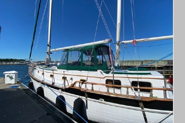 Hull is hand-laid solid fiberglass with a full keel and attached rudder. Ballast is encapsulated in the keel and believed to be iron set in epoxy.