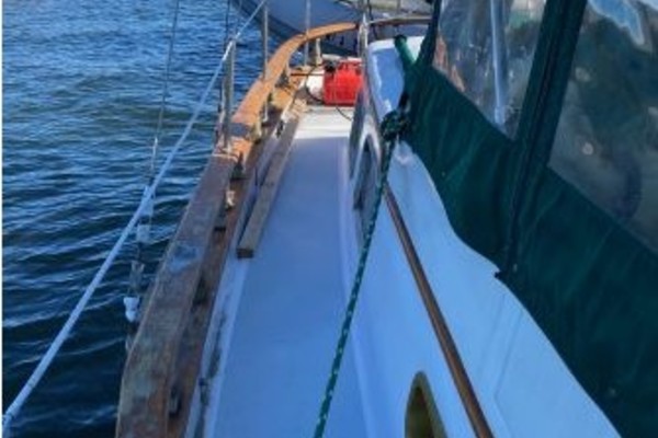 Deck is fiberglass with balsa core. Original teak overlay was removed and the deck was re-cored and glassed over in 2004. Deck and Hull have been professionally awlgripped in 2008