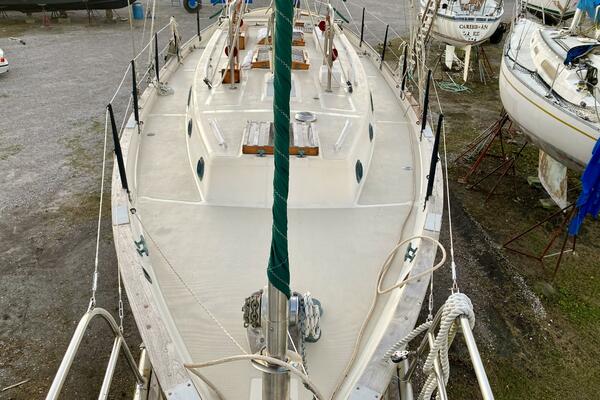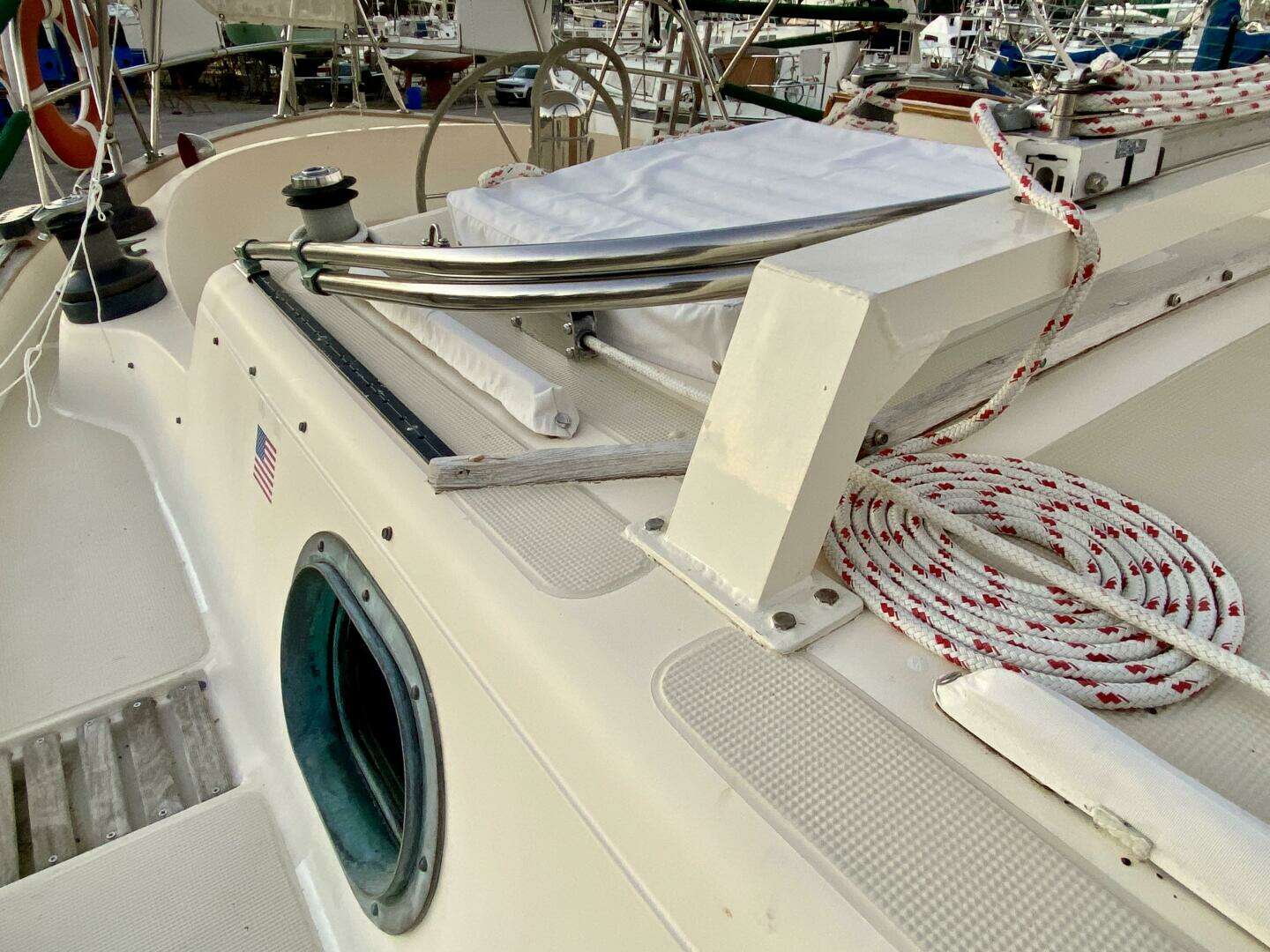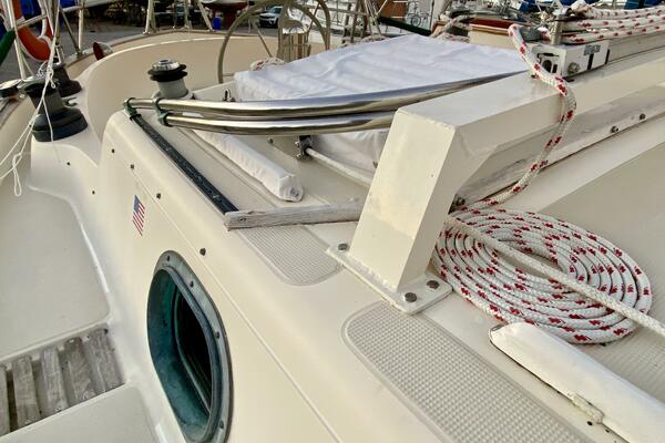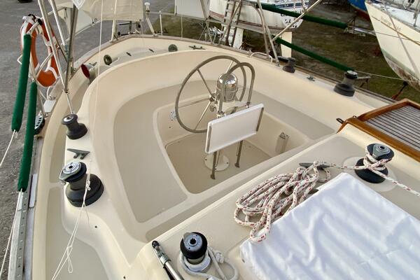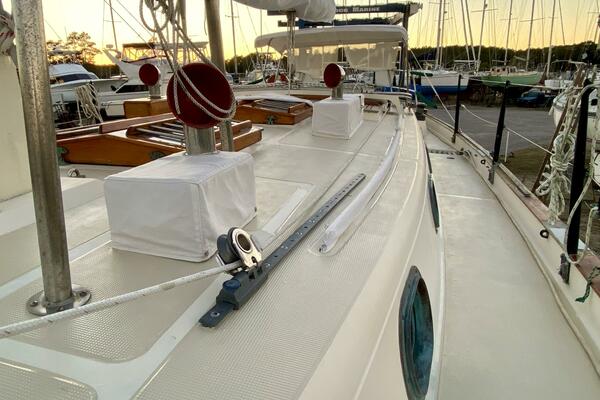Hull #51 features the sought-after tall rig, enhancing light-air performance and offering a balanced, versatile sail plan. Unlike many Westsails finished by owners, this vessel was professionally completed at the factory, ensuring superior craftsmanship and a high-quality fit-out throughout. The aft cockpit layout provides excellent protection and ample deck space, ideal for handling sails and steering in challenging conditions.