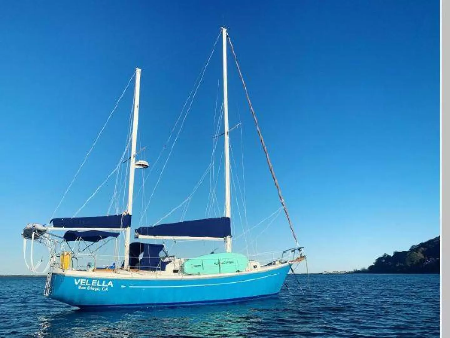 Thick fiberglass and ready for anything, it cruises great and the ketch is a beauty to sail.