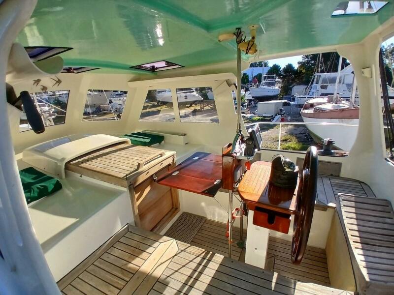 Lady Bella’s spacious cockpit was recently transformed with an incredibly designed and well-built hardtop enclosure, featuring three hatches to enjoy the sea breeze, large tinted double pane safety glass windows, and a fixed glass port above the helm station for viewing the sails. To be fully enclosed, her Phifertex Full Sun Screens AND Stamoid/Vinyl enclosure can easily do the job! The ceiling of the enclosure is a stunning sea glass blue, as if reflecting the Bahamian waters, where “Lady Bella” spent much of her time in the recent past. Don't miss the immersive tour past the photo section of this listing!