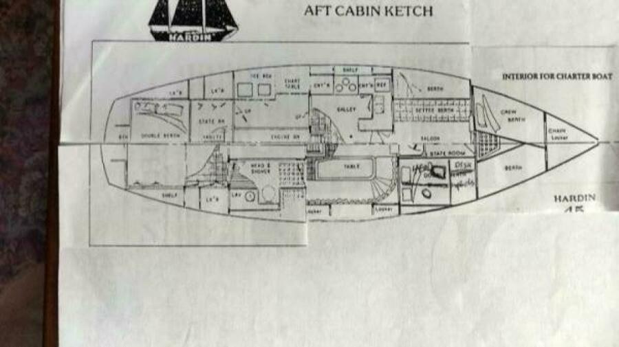 | Notable Upgrades: 2013: US SPAR ALUMINUM MAIN MAST AND MIZZEN | 2017: GARMIN CHART PLOTTER | 2017: PORT AND STARBOARD WINDOWS IN SALON REPLACED WITH DOUBLE PANED TINTED SAFETY GLASS | 2019: VICTRON 12 VOLT 100 AMP AC/DC CHARGER | 2023: CUSTOM HARDTOP ENCLOSURE | 2023: 10 NEW AGM HOUSE BATTERIES |