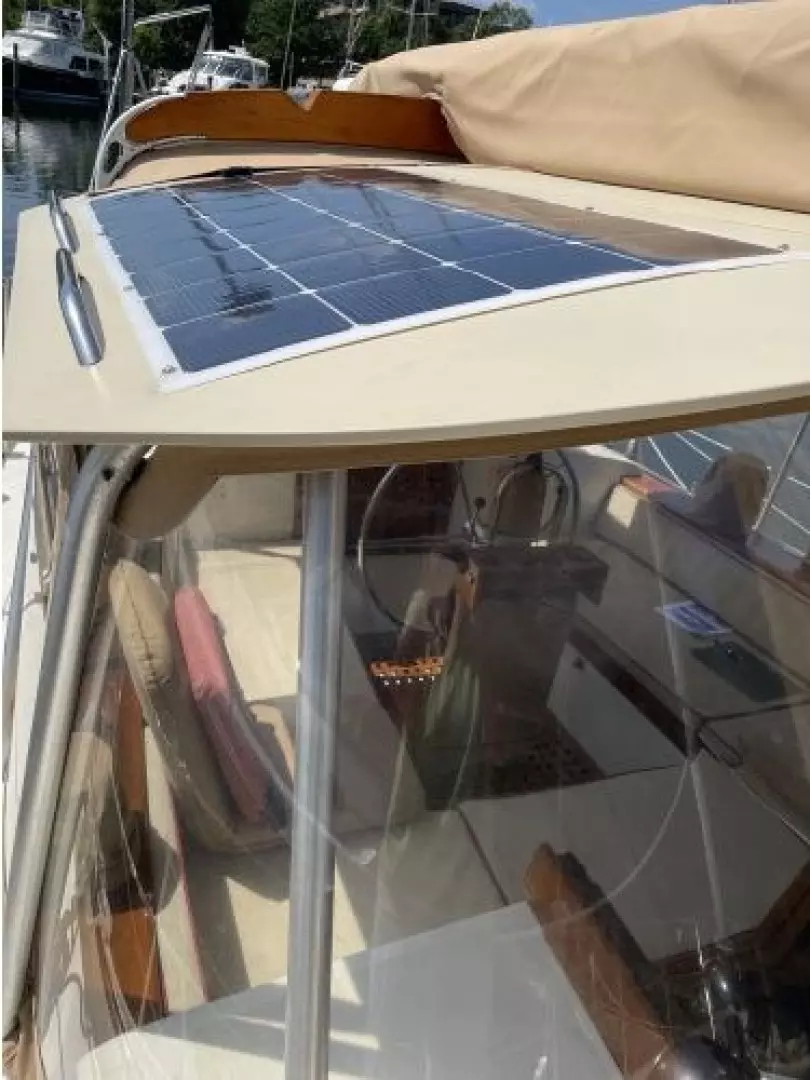 - Solar: Two Solbian 140 watt panels, mounted atop cockpit hardtop, installed 2020; Blue Solar charge controllers