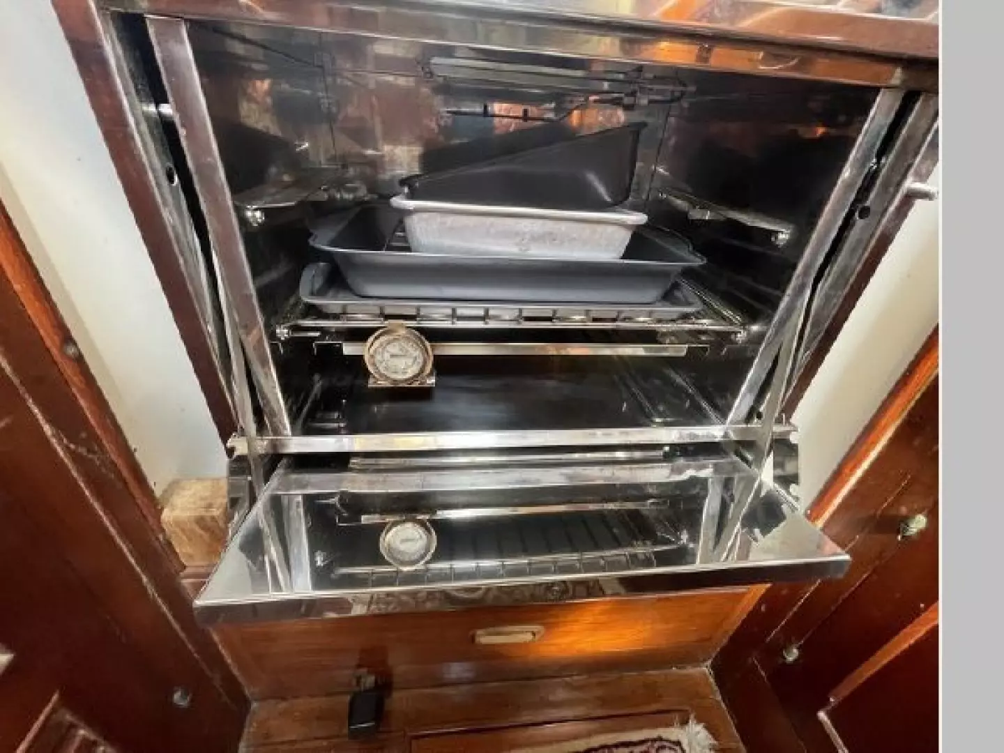 Her main salon features a U-shaped dinette to port with extensive storage beneath and outboard and a hi/low table for easy conversion to a double berth. To starboard is the settee that also converts to a single berth. Aft of the settee to starboard is the large Navigation station with repeaters for autopilot, navigation/radar. Opposite the Nav station to port is the U-shaped Sea galley.
