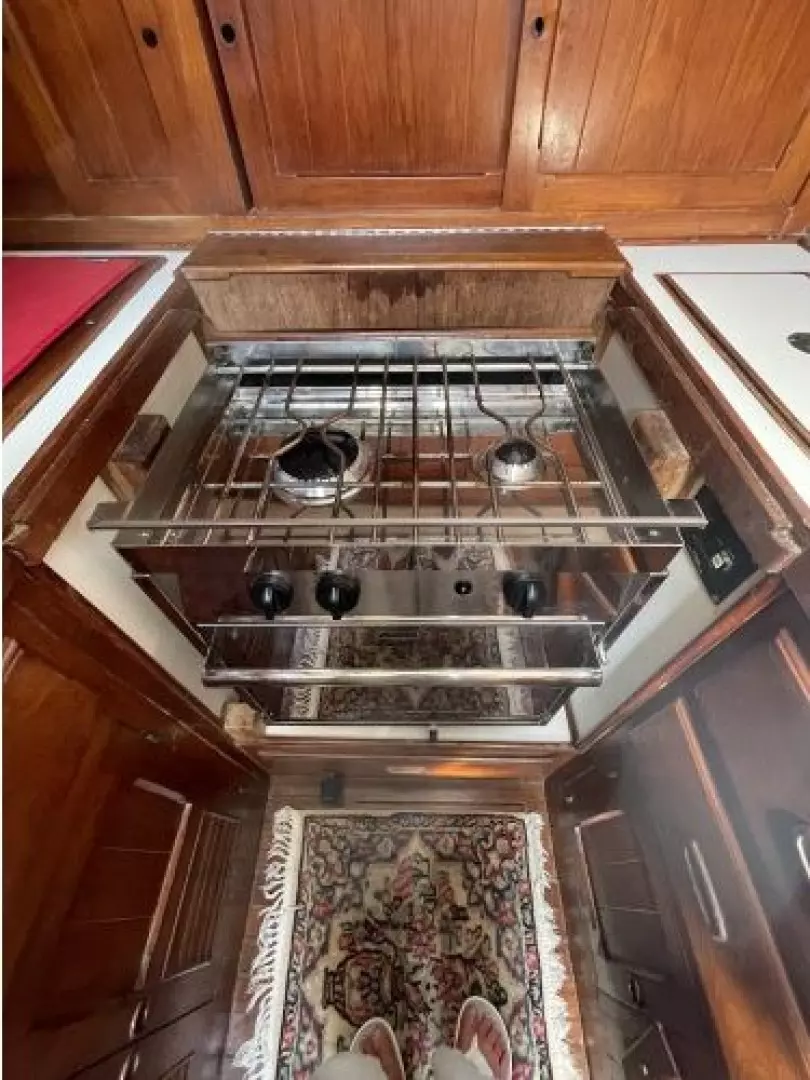 - She has a true U-shaped Sea Galley to port of the companionway with abundant storage and counter space.