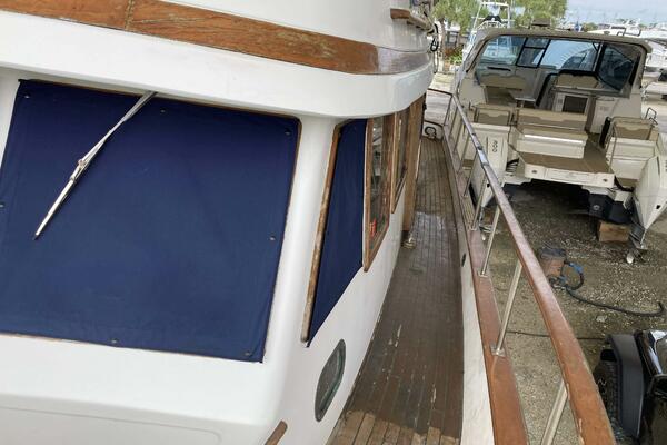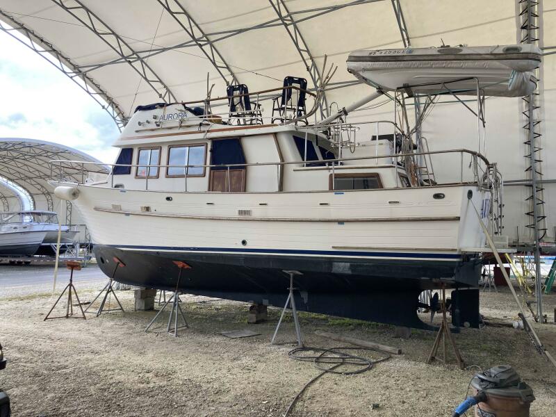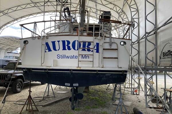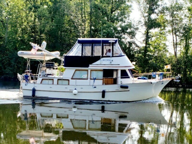 Rugged construction and exceptionally seaworthy, “Aurora” is a Albin 36’ Double Cabin Trawler that is ideal for those who enjoy the look, style and function of a classic trawler. A dream for many couples and families is The Great Loop. Aurora has done the Loop twice. The latest was with the current owners. The desired height for bridges and the fold down mast make it possible. The couple who currently own this Albin Double Cabin Trawler have traveled extensively and cared for her through their many adventures. “Aurora” sleeps 6 in Fore and Aft cabins and an L-shaped Convertible settee in the Salon. She has 6’5 headroom, two private head compartments, the master has both a shower and a tub and she’s Air Conditioned. She has a generator, windlass, a teak swim platform, davits and secure rails all around the decks. She has both Upper and Lower Helms with controls, see below equipment list. She is powered by the larger, reliable 135HP Ford Lehman engine with 4620 hours and has a bow thruster. Creature Comforts are abundant aboard this trawler. She does need flybridge canvas. The old canvas pieces and the stainless frame is onboard. These owner’s have enjoyed Aurora for several years but life is telling them that it is time for New Owners to enjoy her.