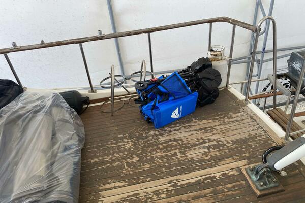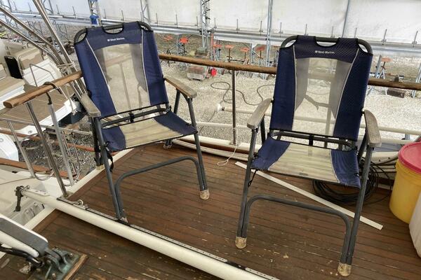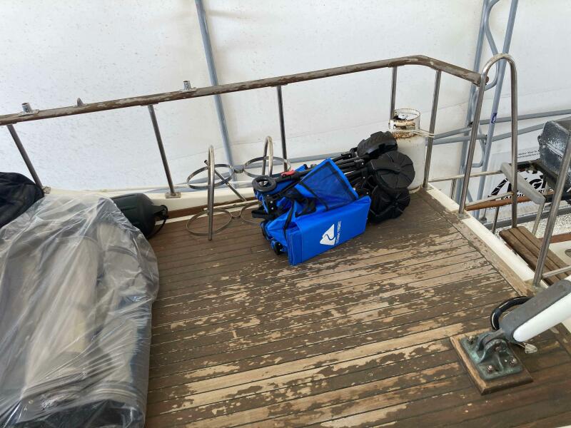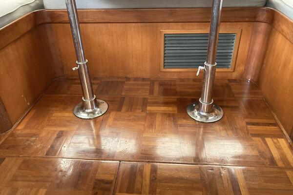As you board Aurora, you'll first notice the wide, easy-access side decks leading to the forward and aft sections of the boat. The aft deck is spacious, offering plenty of room for seating, fishing, or enjoying the view. It’s also equipped with a ladder for easy access to the flybridge, where you can enjoy commanding views of your surroundings while underway.