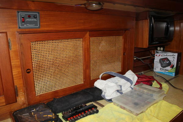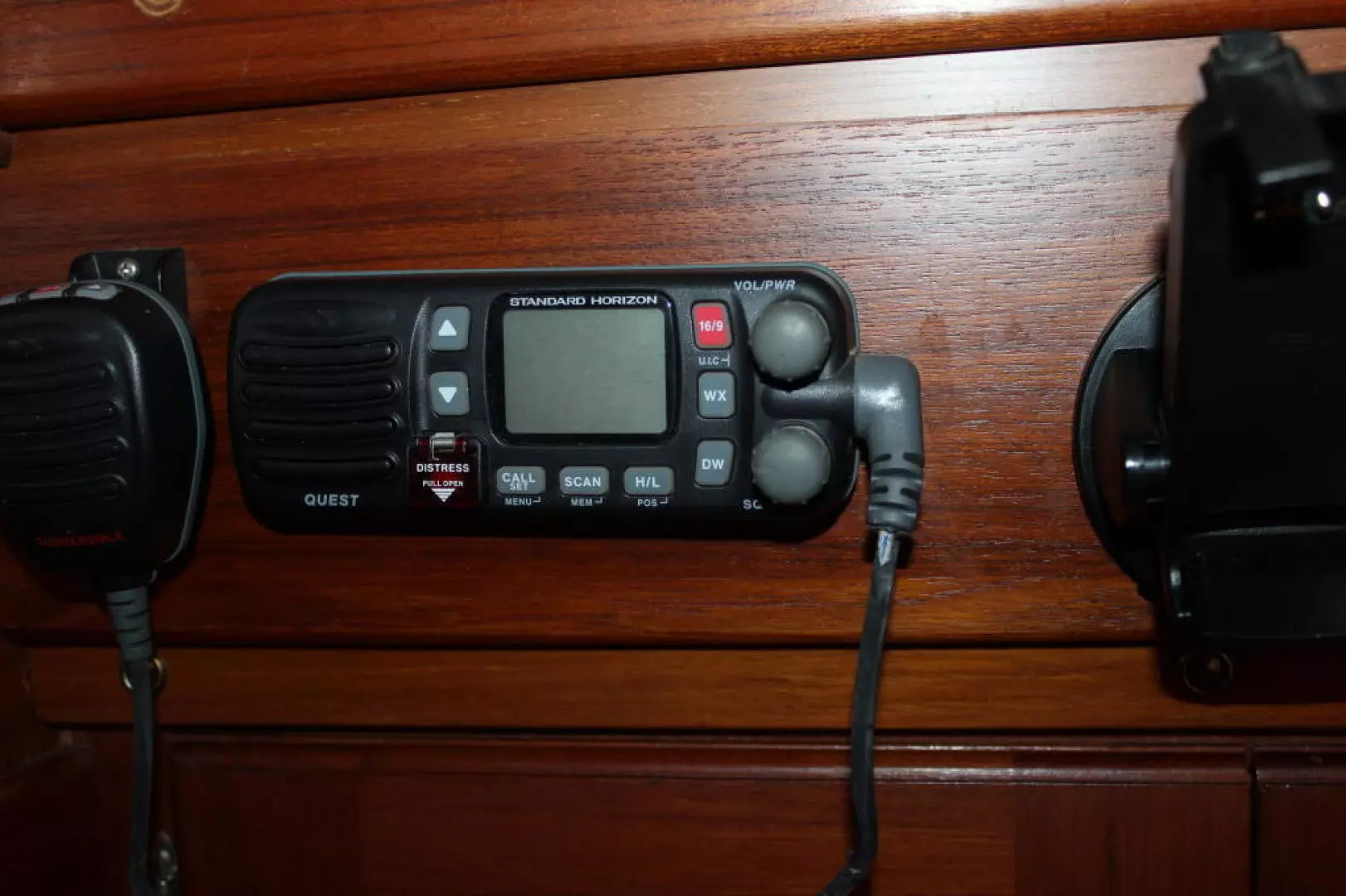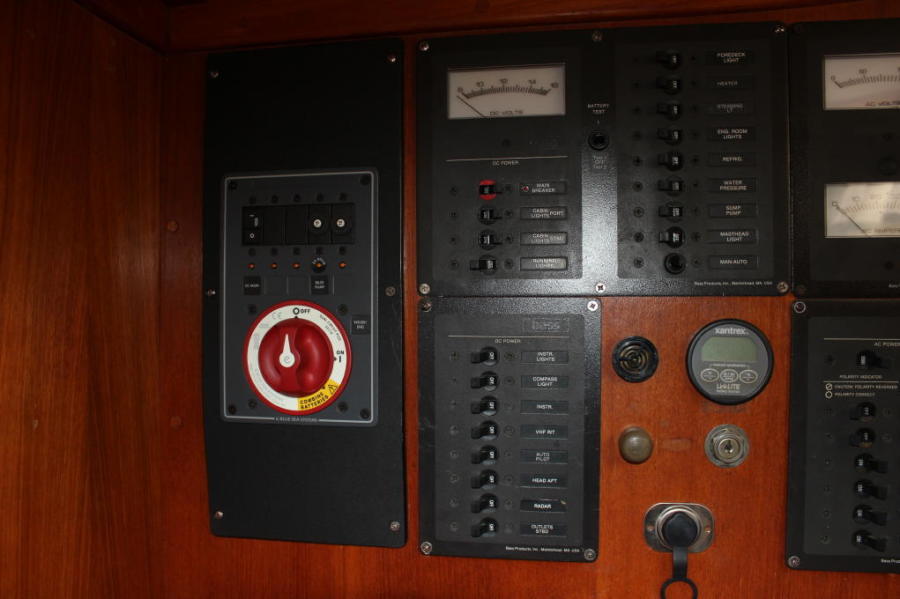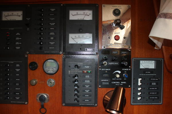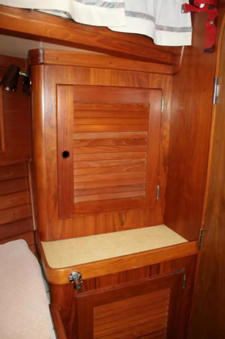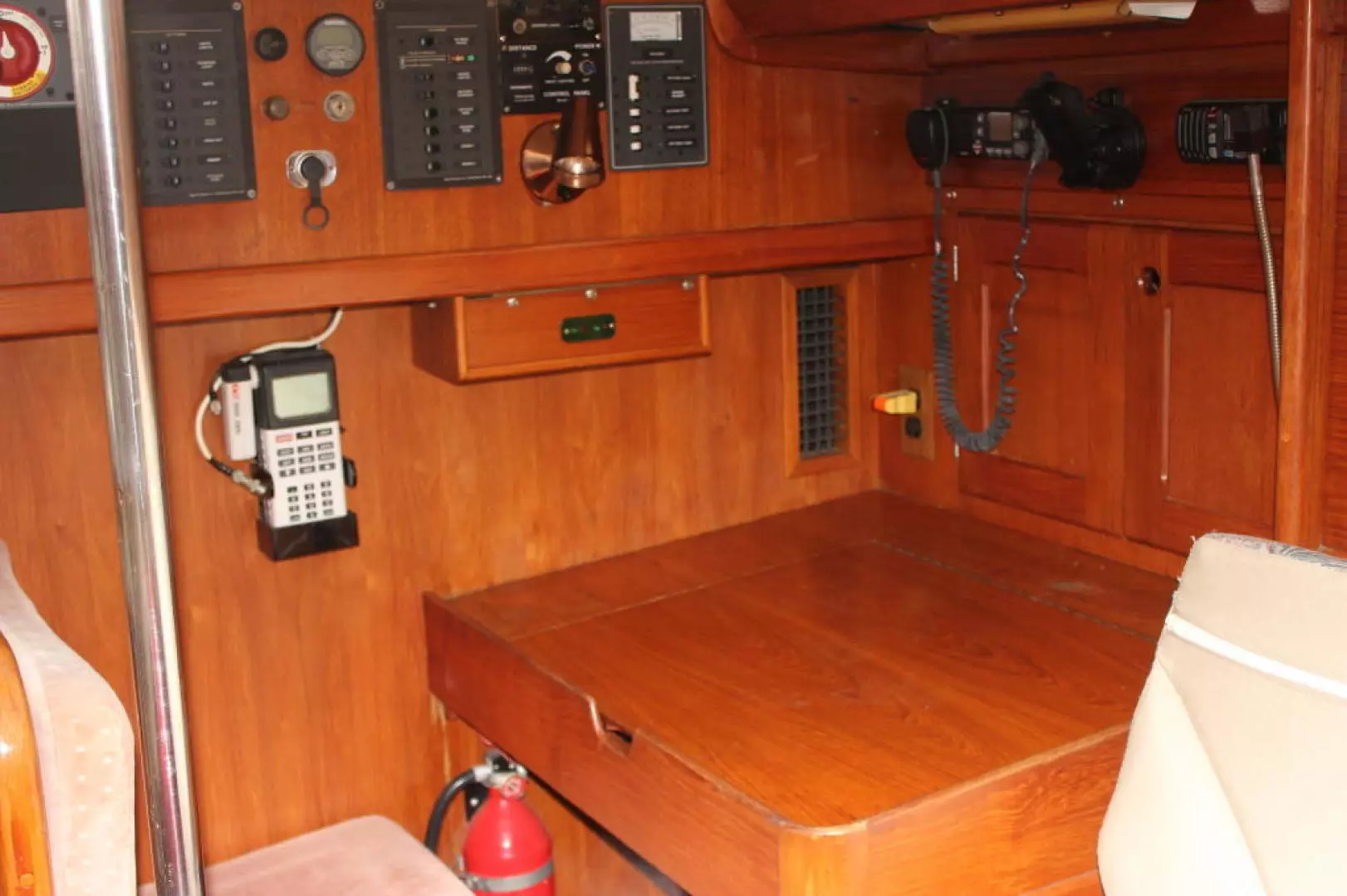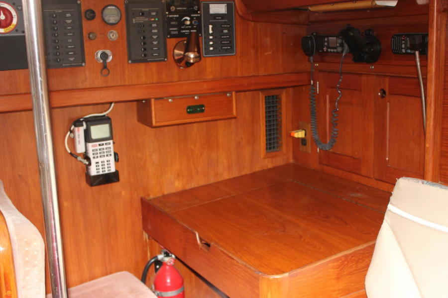 Aft to port is the navigation station with chart table, breakers and electronics; and comfortable desk for working on board.