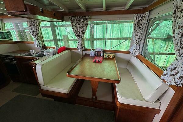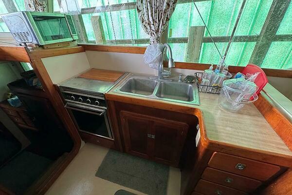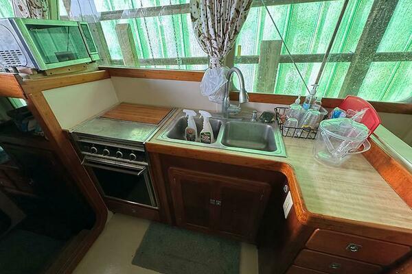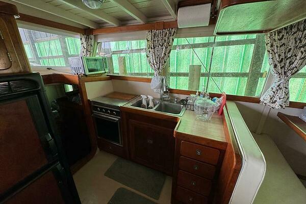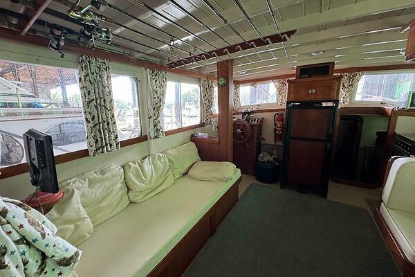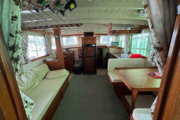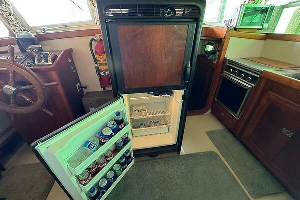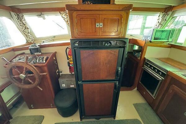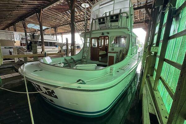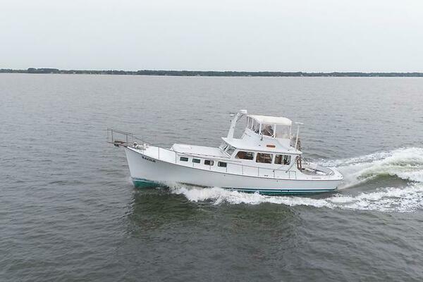 Her beautiful, rounded transom and overall lines have made her a very seaworthy vessel combine that with the updated John Deere engine which was installed in 2014 this is a cruisers dream!