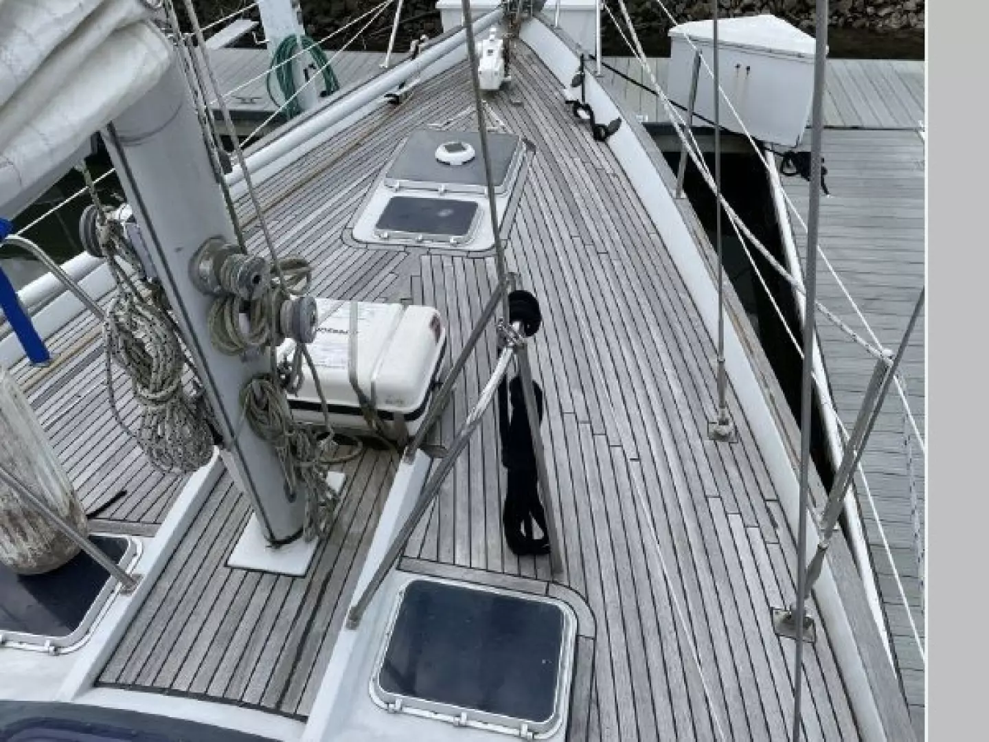 Teak decks and cockpit boarding platform