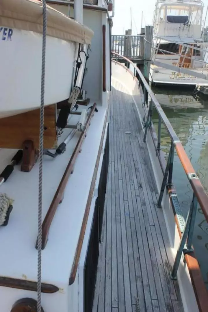 The Grand Banks 42 is easily the most successful trawler design ever produced. Although called a trawler, the Grand Banks does not have a trawler hull. Rather, she rides on a semi-displacement hull with a tall bow, hard chines, and a full keel which gives her a moderate 4'2" of draft. One of the most desirable features of Shirley Ruth is her roomy full-teak interior with the galley forward to port in the salon, opposite the lower helm. The master stateroom is aft and has a full size berth to starboard and a single to port. The forward stateroom has V-berths. Port and starboard doors provide deck access, and full walkaround decks make getting around easy and secure. She is powered by T-120 HP Lehman Diesels with 5200 hours and still going strong. Please check the Full Specs and call for an appointment to see her. She is located in Greenport NY.