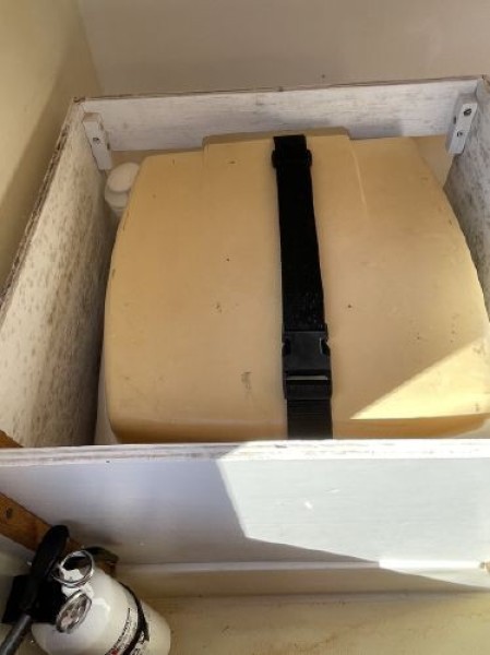 - Porta-Potti to port of the companionway tucked in cabinet. Cabinet adds more counter space.