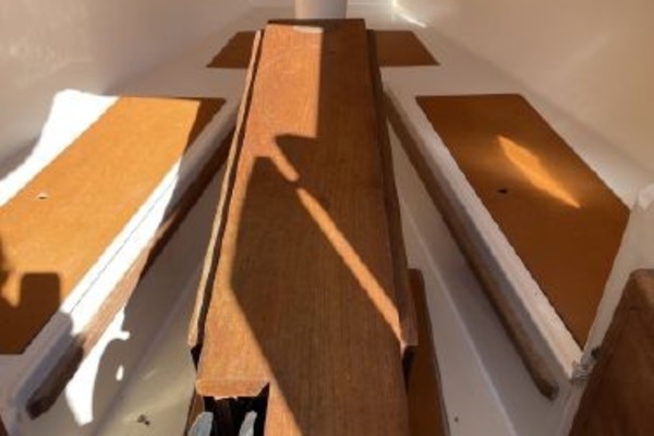 - Centerboard trunk also serves as the centerline table with drop leaves