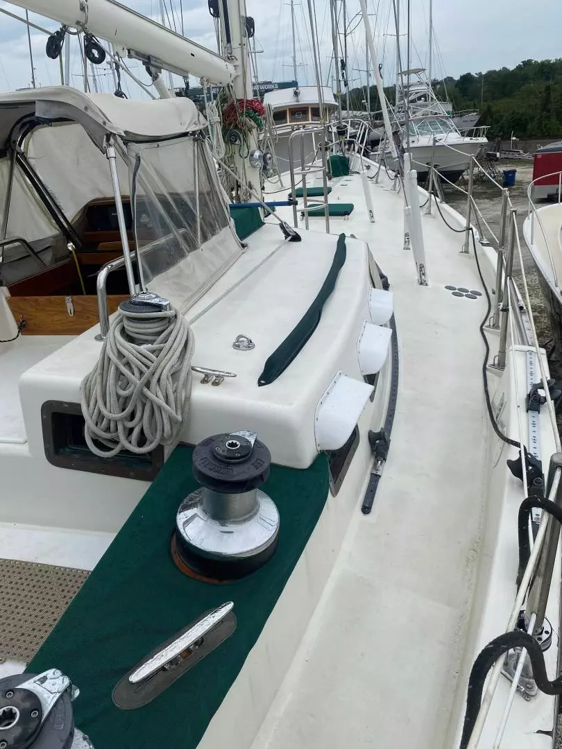 The Flying Dutchman 12 is a sought-after classic design from the golden days of Tayana - stable, comfortable, beautiful, and ergonomic. She boasts a first-rate interior finish, large tankage, abundant storage and many amenities normally found on larger yachts. Notably, she has the desirable 3-cabin layout, and a custom 63ft mast which means she is ICW-capable.