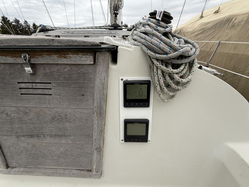 Steel Cradle; Companionway Screen;Teak Cockpit Table and drink holder; Man Overboard Pole; Cockpit Cushions; LifeSling; Horseshoe Buoy