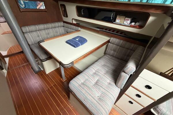Danforth Anchor; VC-17 bottom paint; Fin Keel; Wheel Steering; Split Backstay Adjuster; Roller Furling head sail; 4 Halyards; Spinnaker Sheets; Rod Standing Rigging; Vang; Primary Winches-Lewmar #44 ST; Halyard-Lewmar #30 ST; Main Sheet-Lewmar #30 ST; Cabin Top-Barient 18 2 speed & Barient #10; White Hull with Blue Stripes. White Decks