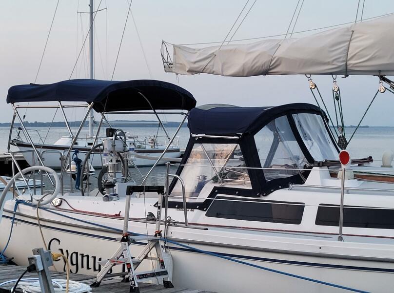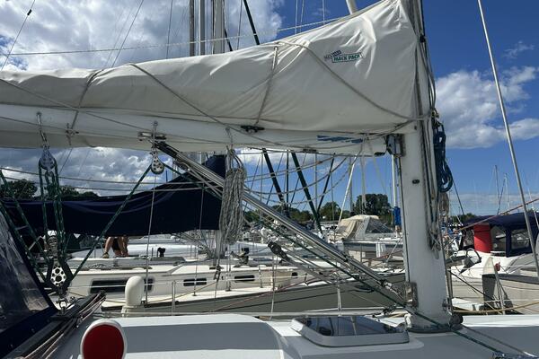 Main Haarstick new in 2015 with Mack Pack cover with lazy jacks. 150 Genoa with new sun cover on roller furling.