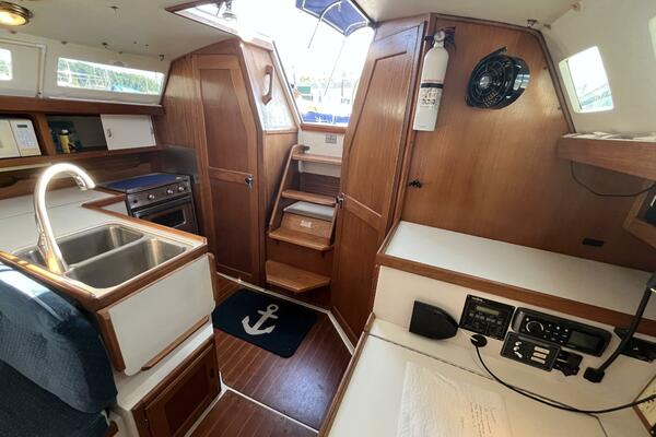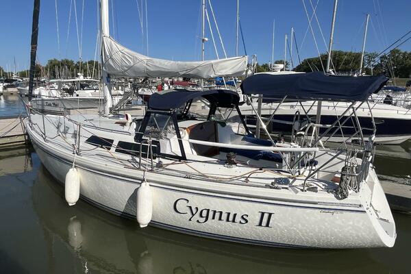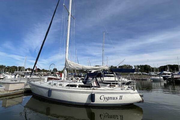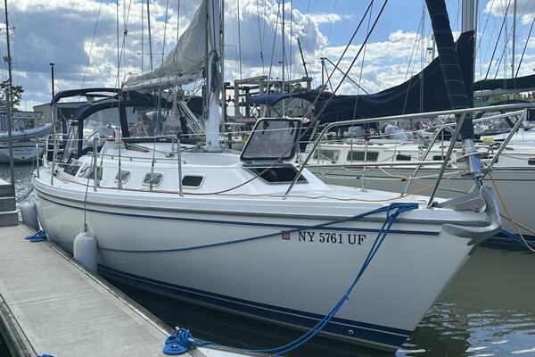 This Frank Butler designed sloop first came on the market in 1986. Since then the Catalina 34 built a well deserved reputation as a classic blend of performance, comfort and value. The large cockpit has pedestal steering with all the instruments located at the wheel. The walk-through transom uses a double duty ladder/gate. The cockpit has canvas for a complete enclosure, and all lines lead to the cockpit for single handed sailing and safety.