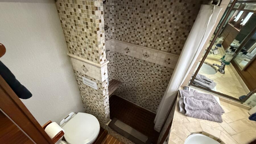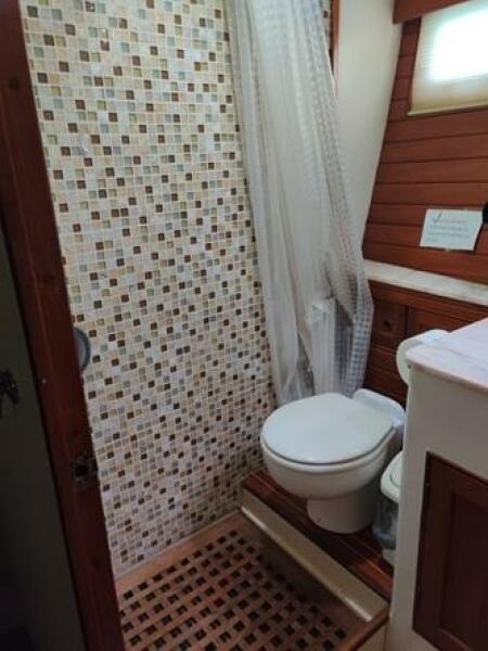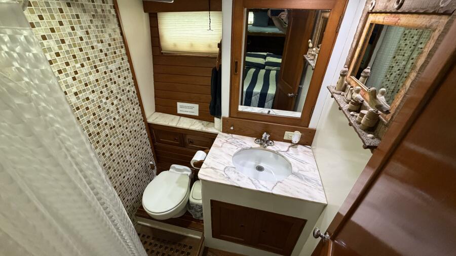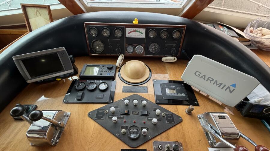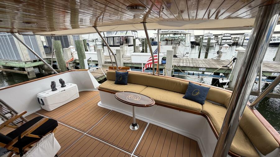 Powered by twin Volvo Penta TAMD61A diesels (repowered 1995) and supported by two generators, Queen Jeannine delivers reliable performance and onboard autonomy. She features five Webasto air conditioning units with heat, two water heaters, and updated 120/240V AC systems with isolation transformers and new main breakers.
